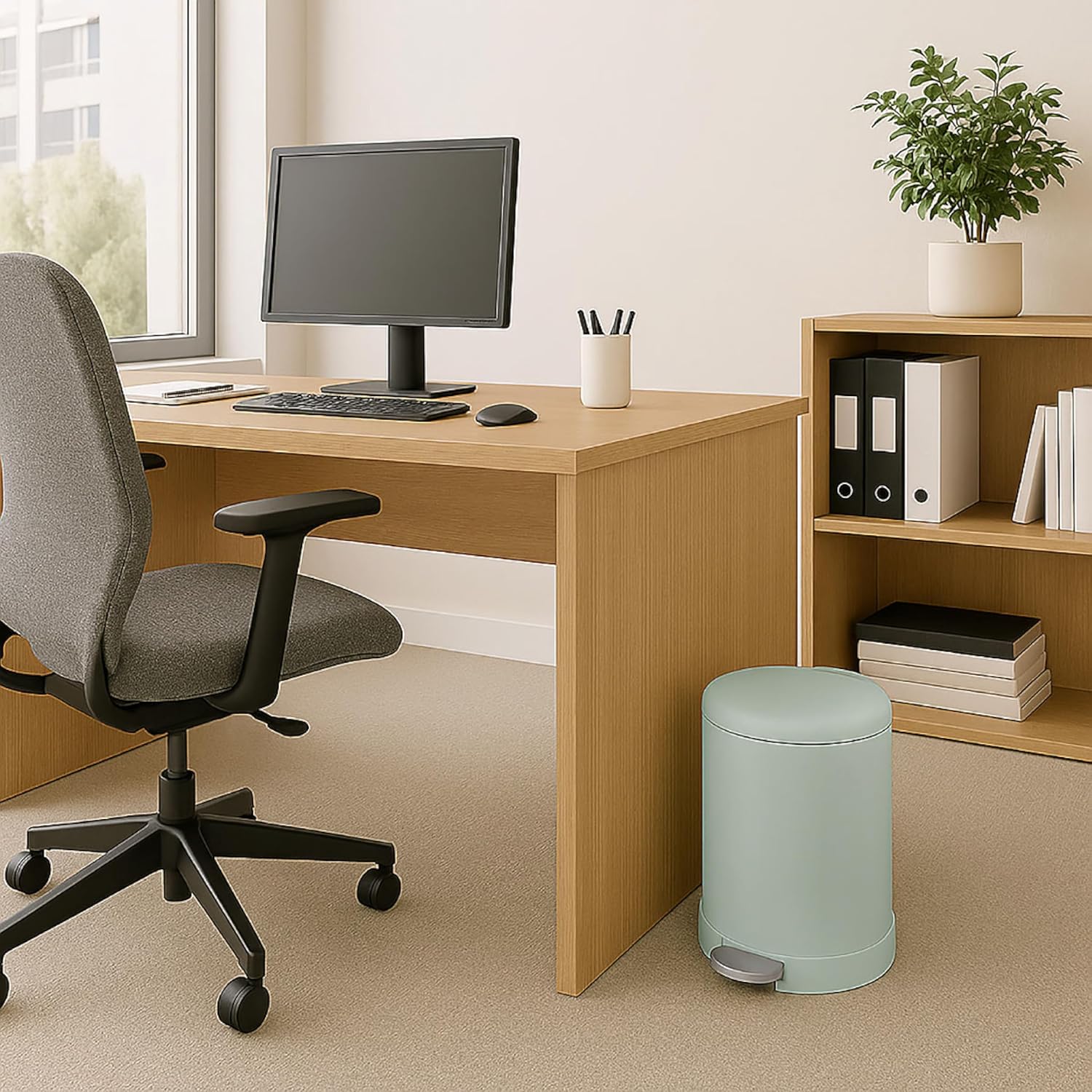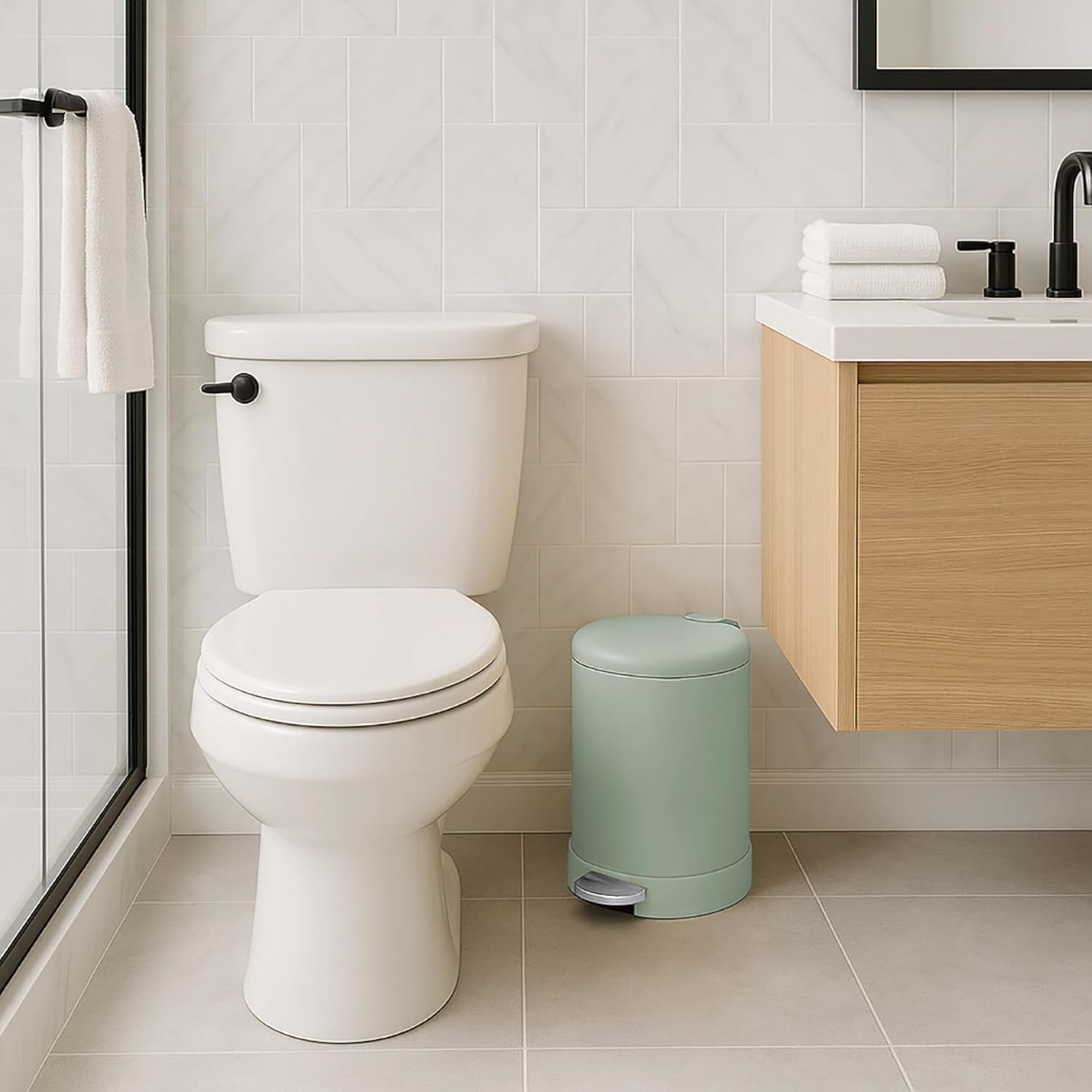 • SMALL TRASH CAN WITH LID - The 1.2-gallon capacity makes this compact trash can the perfect size for rooms with limited space. Makes a great office trash can for near desk, lidded bathroom wastebasket, and tiny step can for apartment kitchens.