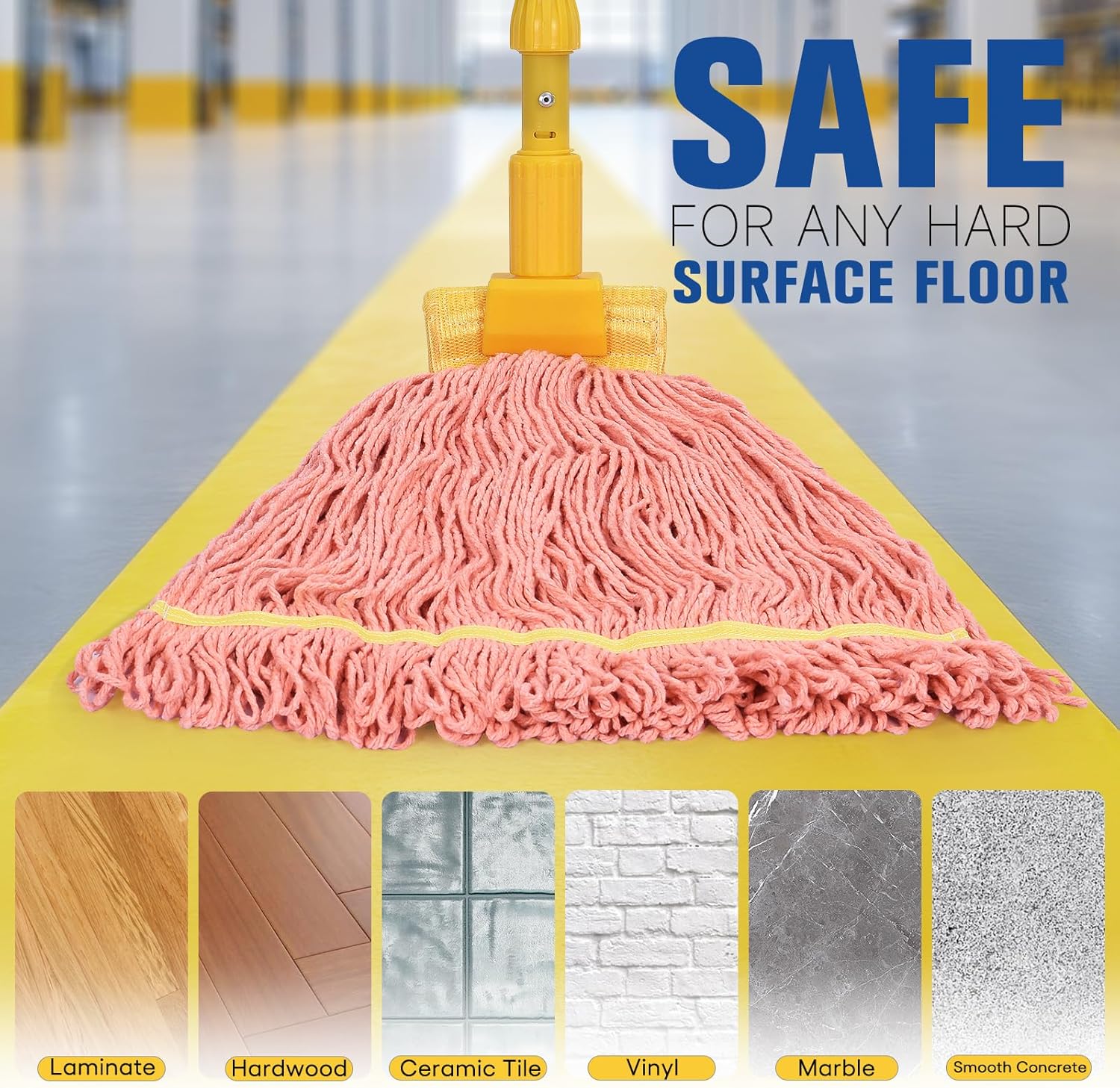 • Safe in Various Applications: This mop refill is safe to use on all hard surfaces for scratch-free, wet and dry mopping. Great for commercial, industrial, and residential use. The mophead replacement is perfect for any cleaning task including: industrial cleaning, janitorial, bars, hotels, restaurants, other food service establishments, and home environments.