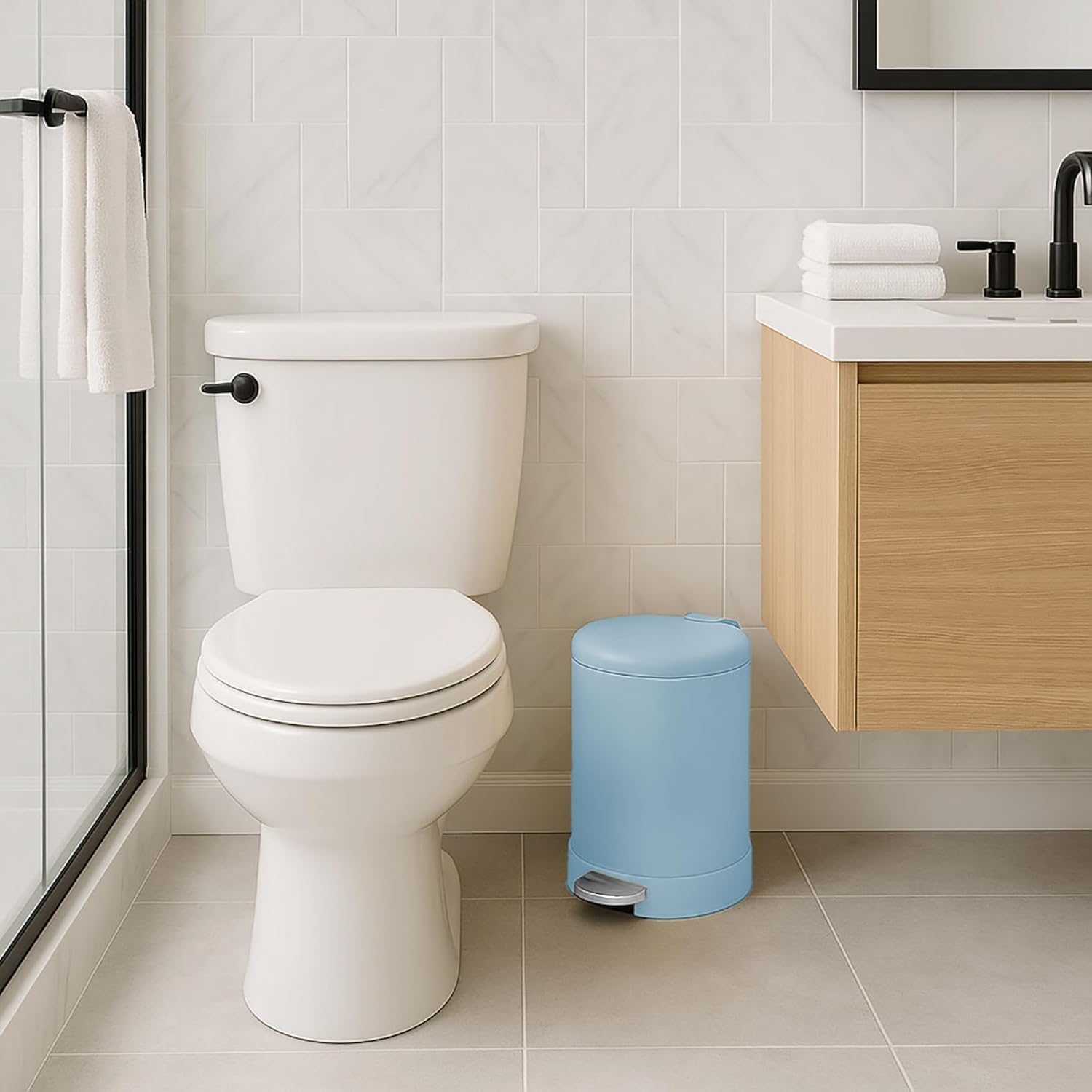 • SMALL TRASH CAN WITH LID - The 1.2-gallon capacity makes this compact trash can the perfect size for rooms with limited space. Makes a great office trash can for near desk, lidded bathroom wastebasket, and tiny step can for apartment kitchens.