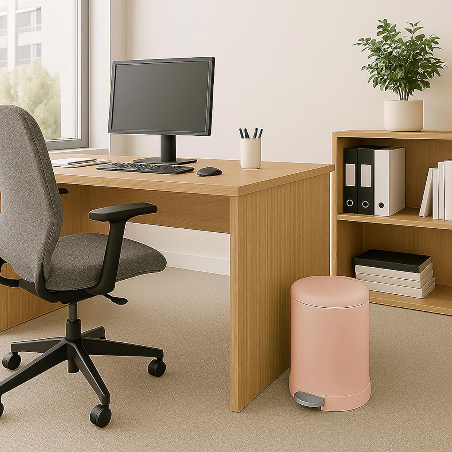 • SMALL TRASH CAN WITH LID - The 1.2-gallon capacity makes this compact trash can the perfect size for rooms with limited space. Makes a great office trash can for near desk, lidded bathroom wastebasket, and tiny step can for apartment kitchens.