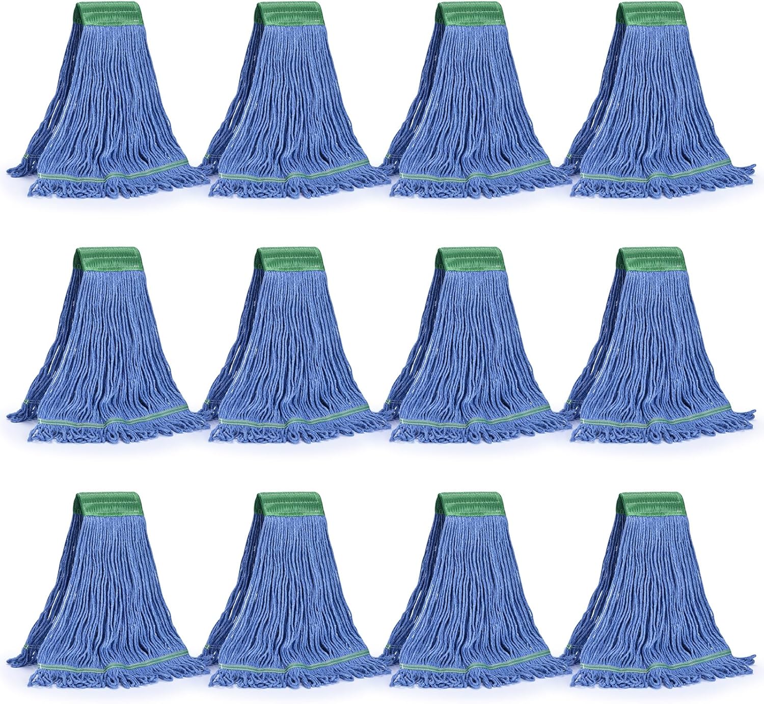 Matthew Cleaning Commercial Mop Head Replacement, 5 Inch Wide Headband, Looped End Cotton Blend String Wet Mops for Floor Cleaning, 28 oz Extra Large, Case Pack 12 Pcs Blue