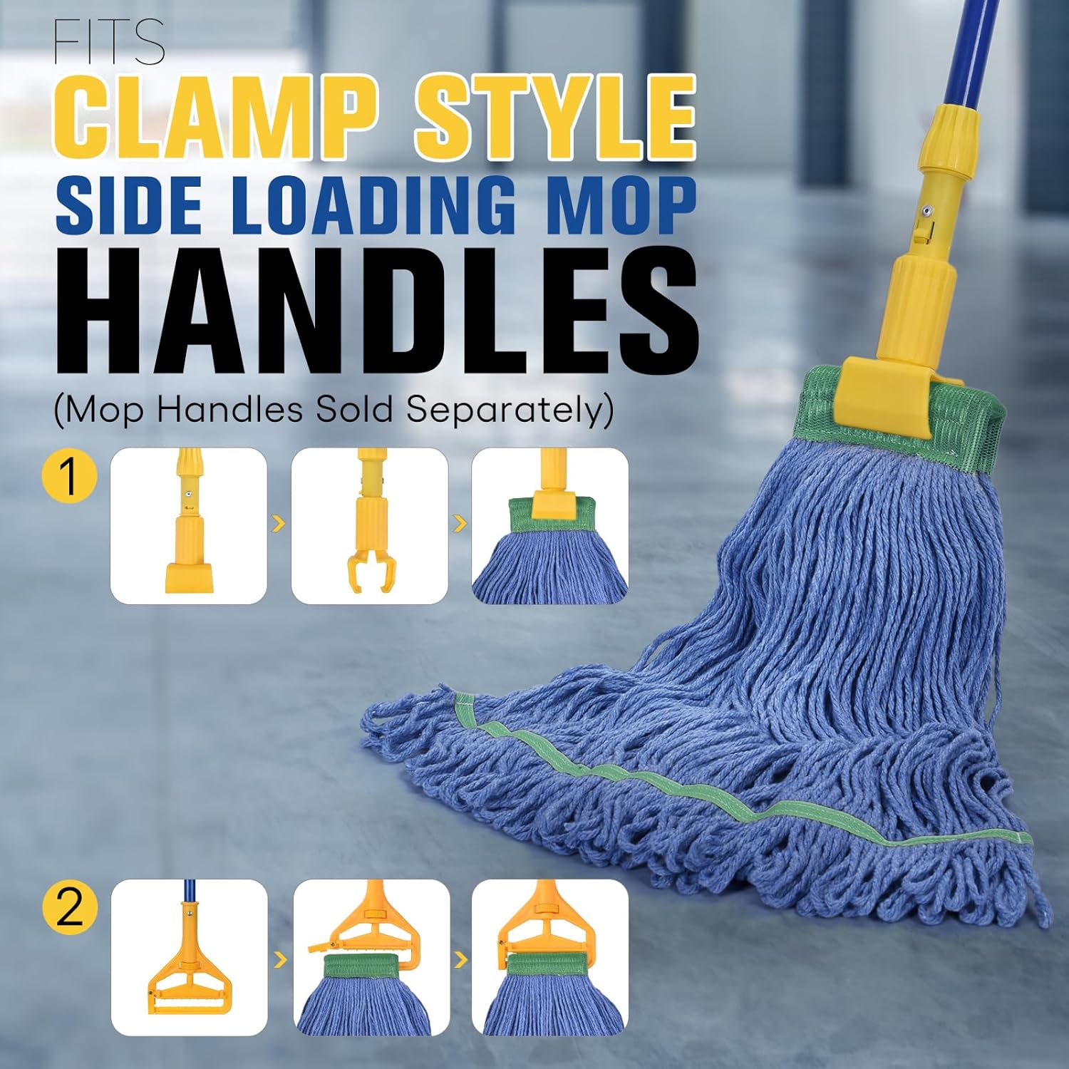 • 5" Wide Headband: The heavy duty mop head is universal and designed to fit with jaw clamp and side-mounted mop handles. (Mop handles sold separately). The heavy-duty stitched mesh headband resists moisture retention so the mop head can dry between uses.