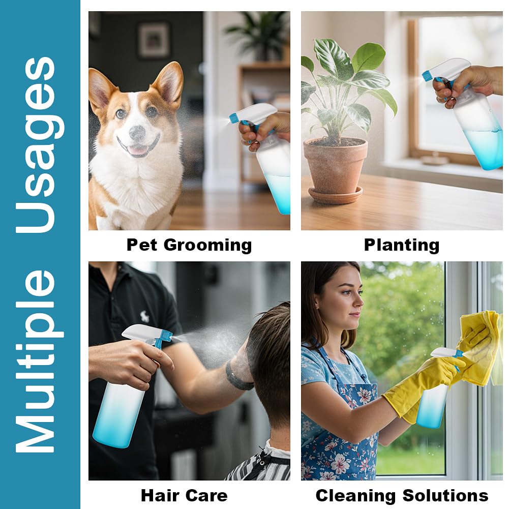 Spray Bottles 16.9oz/500ml Plastic Spray Bottle for Hair Mist/Stream Empty Spray Bottle Heavy Duty Refillable Containers for Cleaning Solutions, Plants Gradient 2 Pack (Blue)
