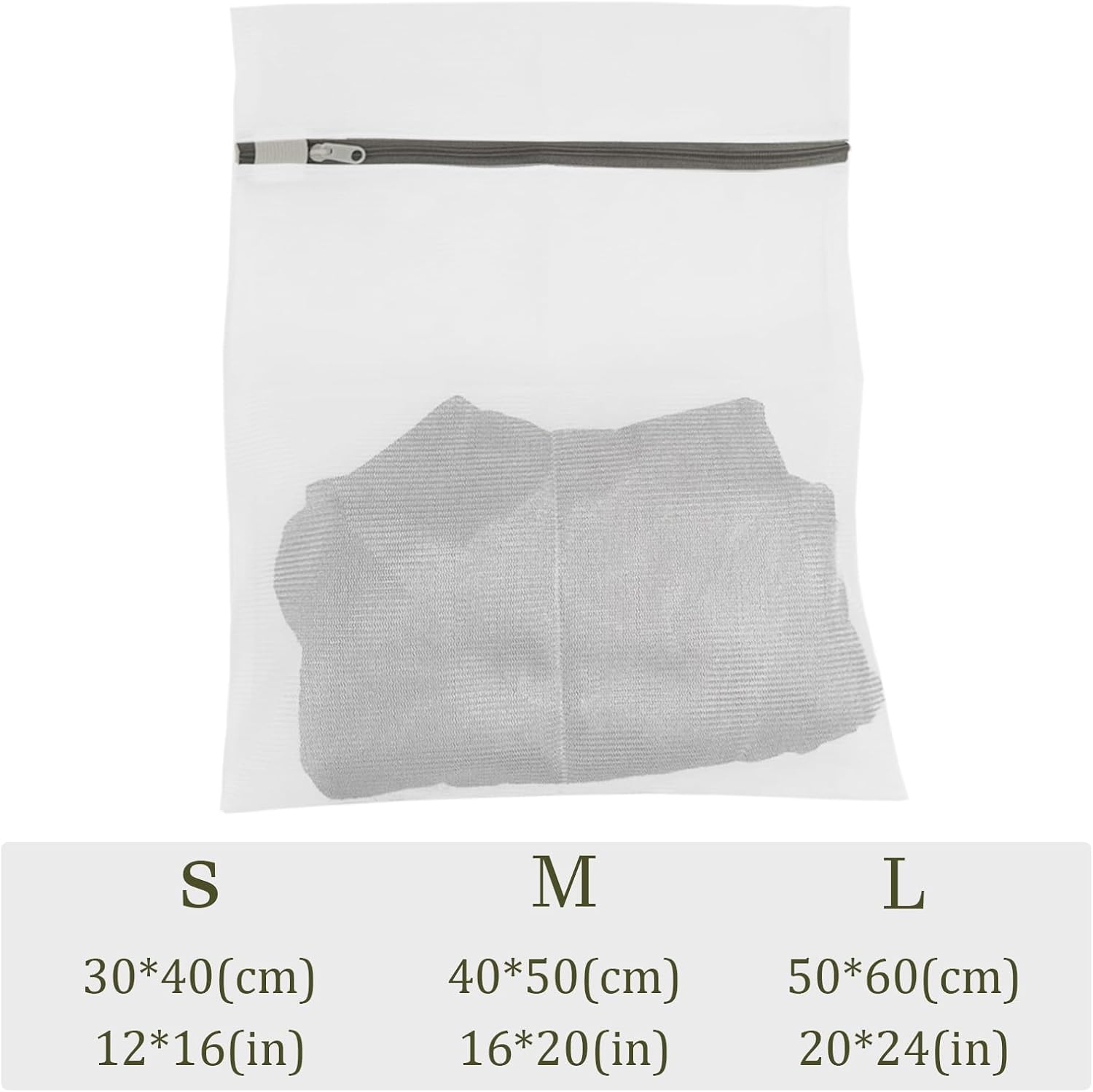 • Package Contents:Set of 3 mesh laundry bags for washing machine.(Includes: 1 Large: 19.6 x 23.6 Inches, 1 Medium: 15.7 x 19.6 Inches, 1 Small: 11.8 × 15.7 Inches). Different sizes suit various types of clothing for a more efficient cleaning experience.