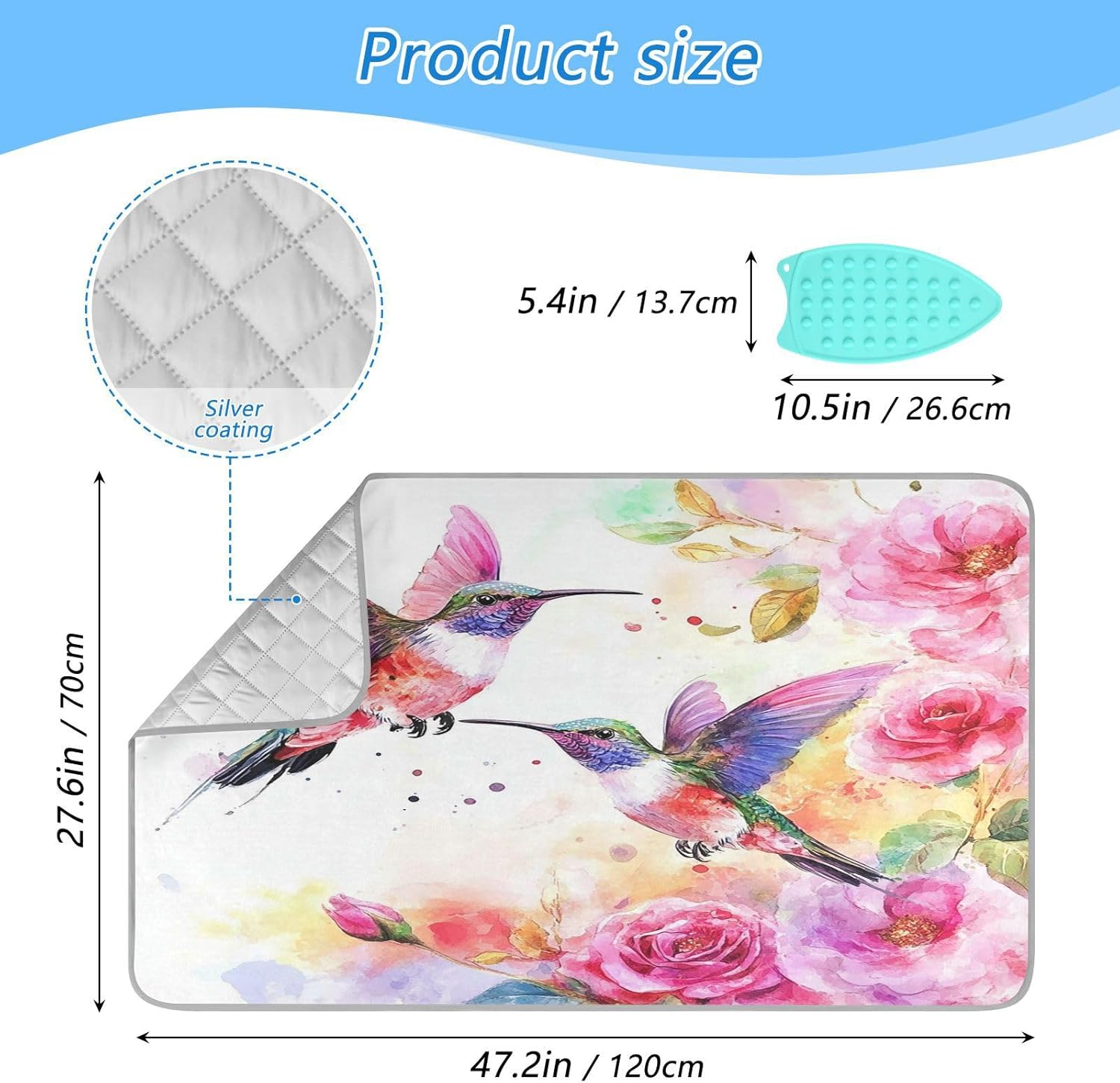 Watercolor Red Hummingbird Ironing Mat for Table top Portable Ironing Pad Blanket for Washer Dryer Countertop Travel