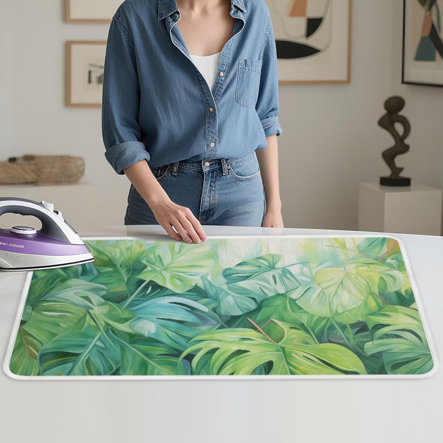 Green Ironing Mat Portable Ironing Pad Monstera Leaf 32 x 16 Inch Large Ironing Mat for Table Top of Washer, Dryer, Table Top, Countertop, Heat Resistant Iron Board Pads