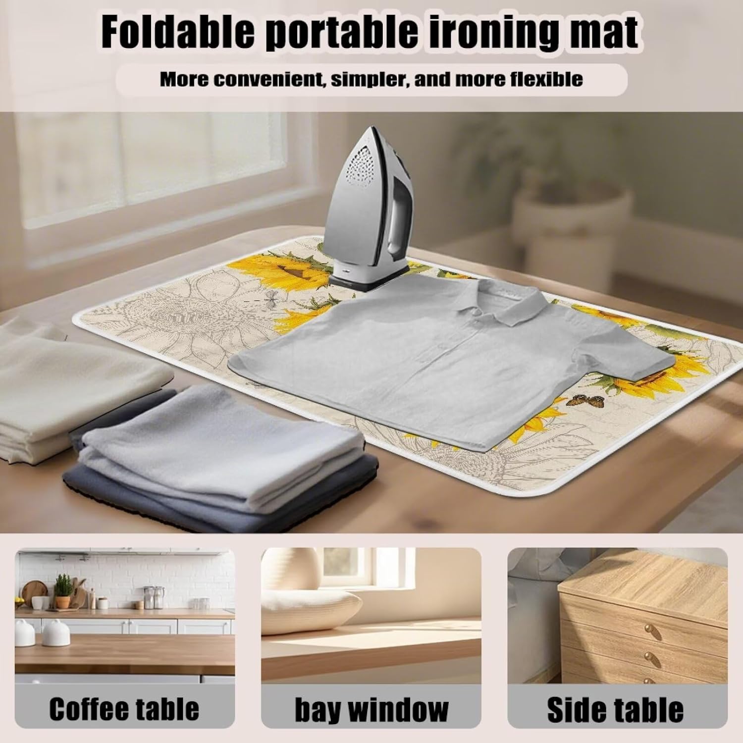 Sunflower Ironing Mat Pad for Table Portable Travel Iron Blanket Vintage Ironing Board Covers Tribal Pressing Mat Heat Press Pads 32x16 Inches,Yellow