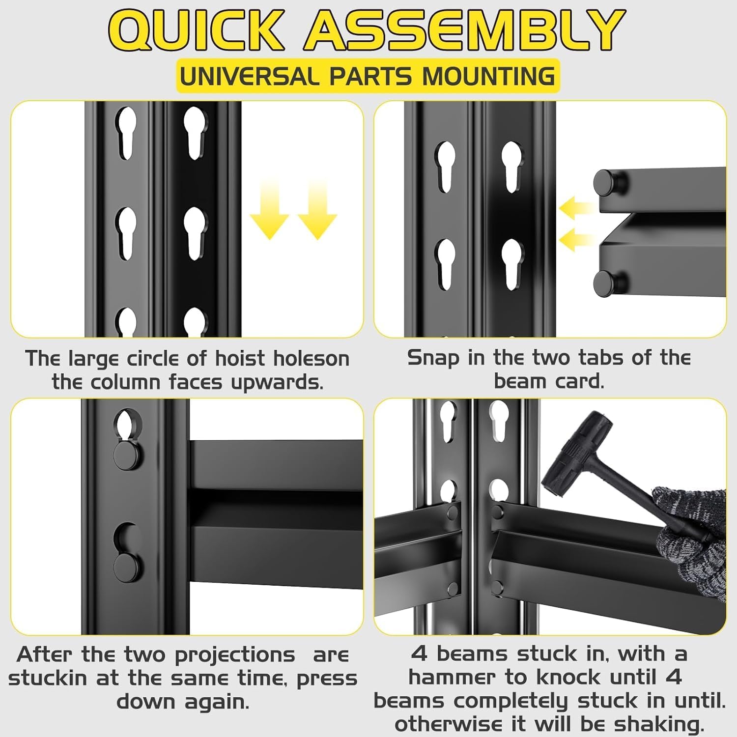 • 【Safer & Stronger Rolled Edge Design】Built tougher and safer! Forget flimsy, sharp-edged posts. Our shelving features a premium rolled-edge design on the metal columns. This not only makes the columns thicker and more durable but also protects your hands from cuts and scratches. It's the smarter, safer choice for garage shelves or shelves for garage storage.