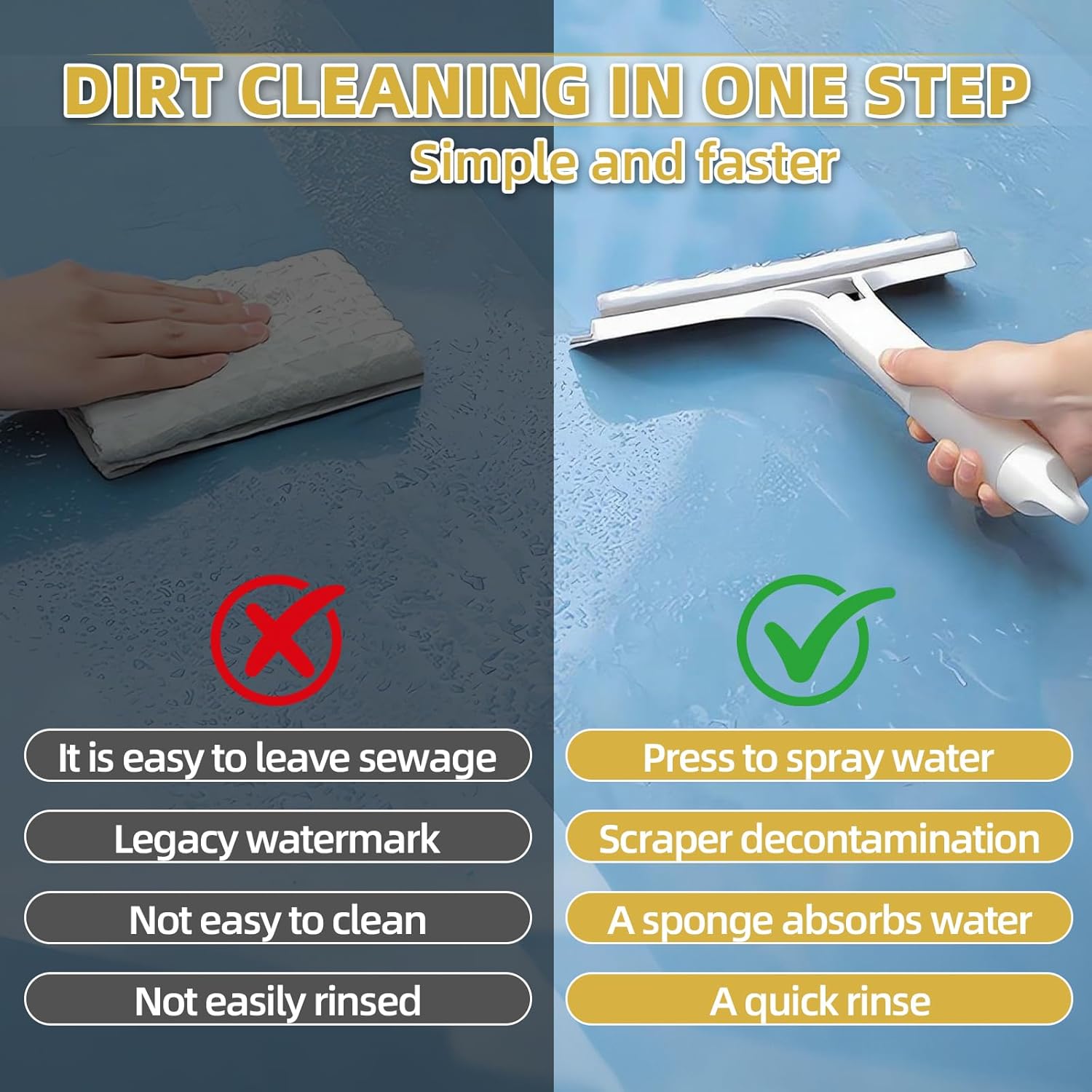 • Multi-Surface Window Cleaning Tool: This window squeegee with spray features a multifunctional squeegee design, suitable for windows, shower doors, mirrors, tiles, and kitchen surfaces. It effectively removes various dirt and water stains, while its three-in-one design makes it easy to eliminate grime, grease, and watermarks, making it an ideal cleaning tool for home and car use.