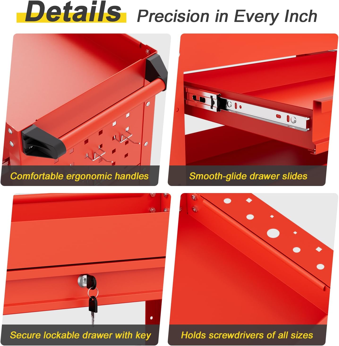 • Multi-Purpose Rolling Storage Cart – Works as a toolbox on wheels, maintenance cart, or utility cart with drawers. Ideal for professionals, DIY, and as a 3 tiered rolling cart for any workspace.