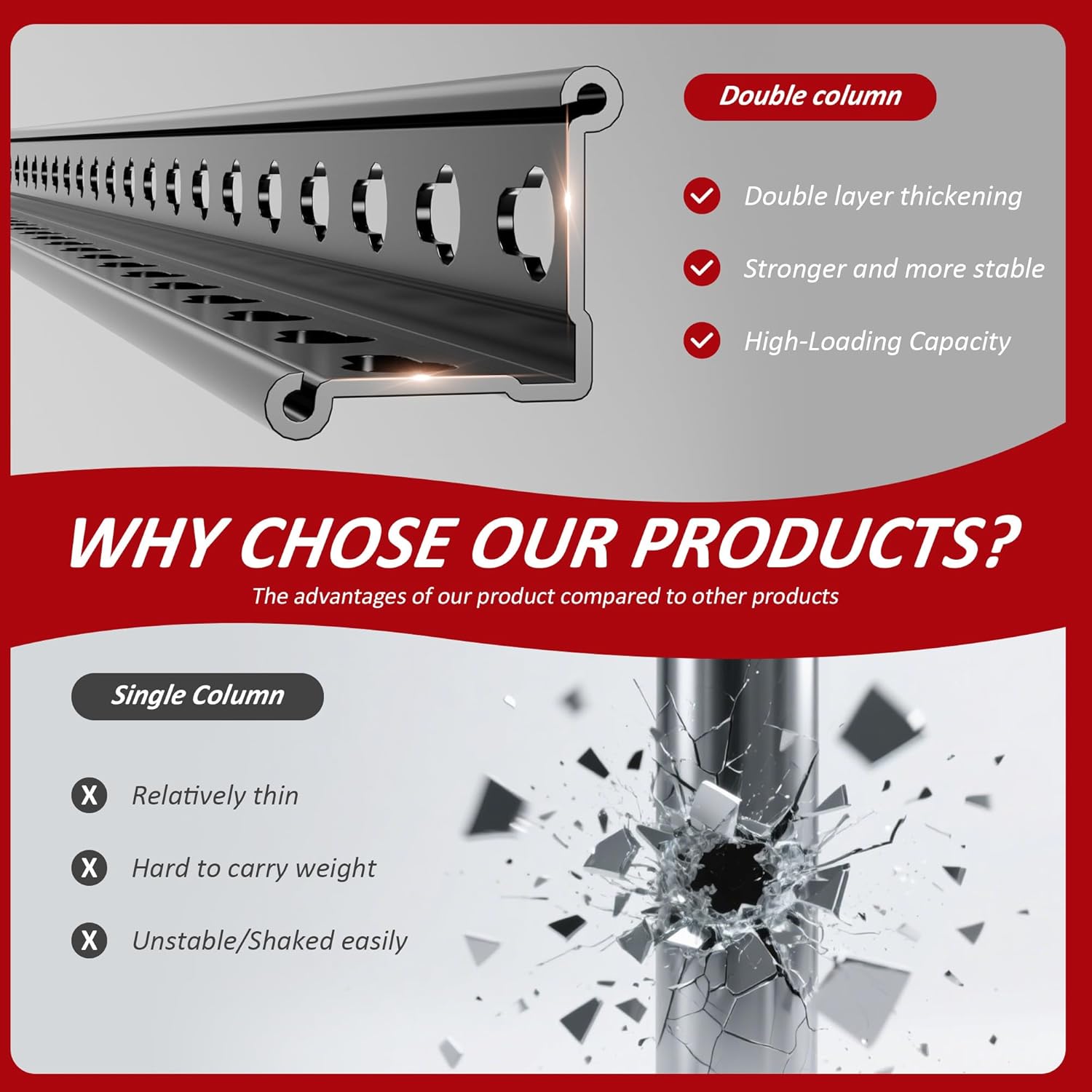 • 【3030LBS Heavy Duty Garage Shelving】VDEVY garage shelves heavy duty adopts unique double - column structure provides extremely stable support for the entire garage shelving units. This design greatly enhances the load - bearing capacity and stability of the shelf, ensuring that it won't shake or deform when storing large and heavy items, giving you more peace of mind when storing things