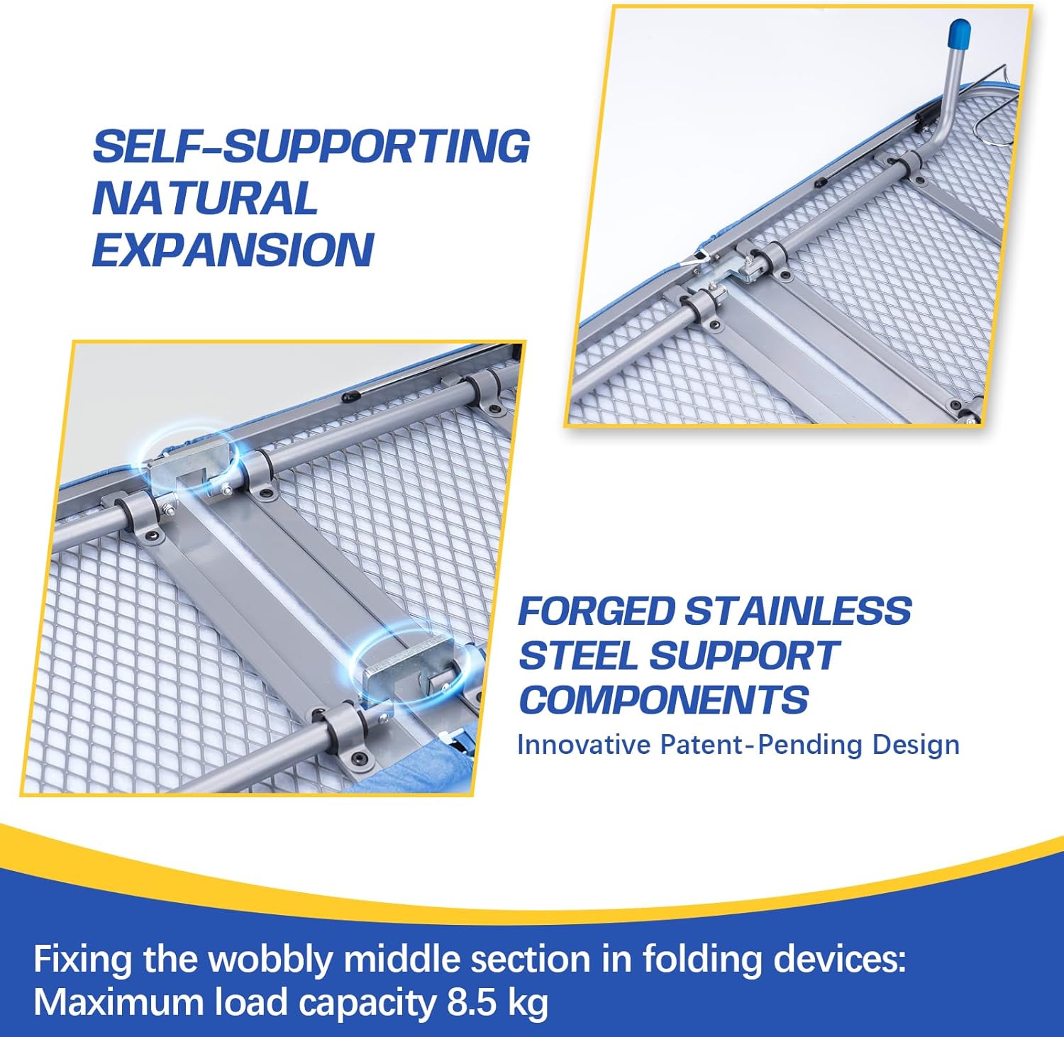 • 【Forged Stainless Steel Supports】The table top ironing board made reinforced stainless steel frame provides unmatched stability (18 lbs max load) and durability. At 5.2 lbs (35% heavier than similar products), it’s built to last.