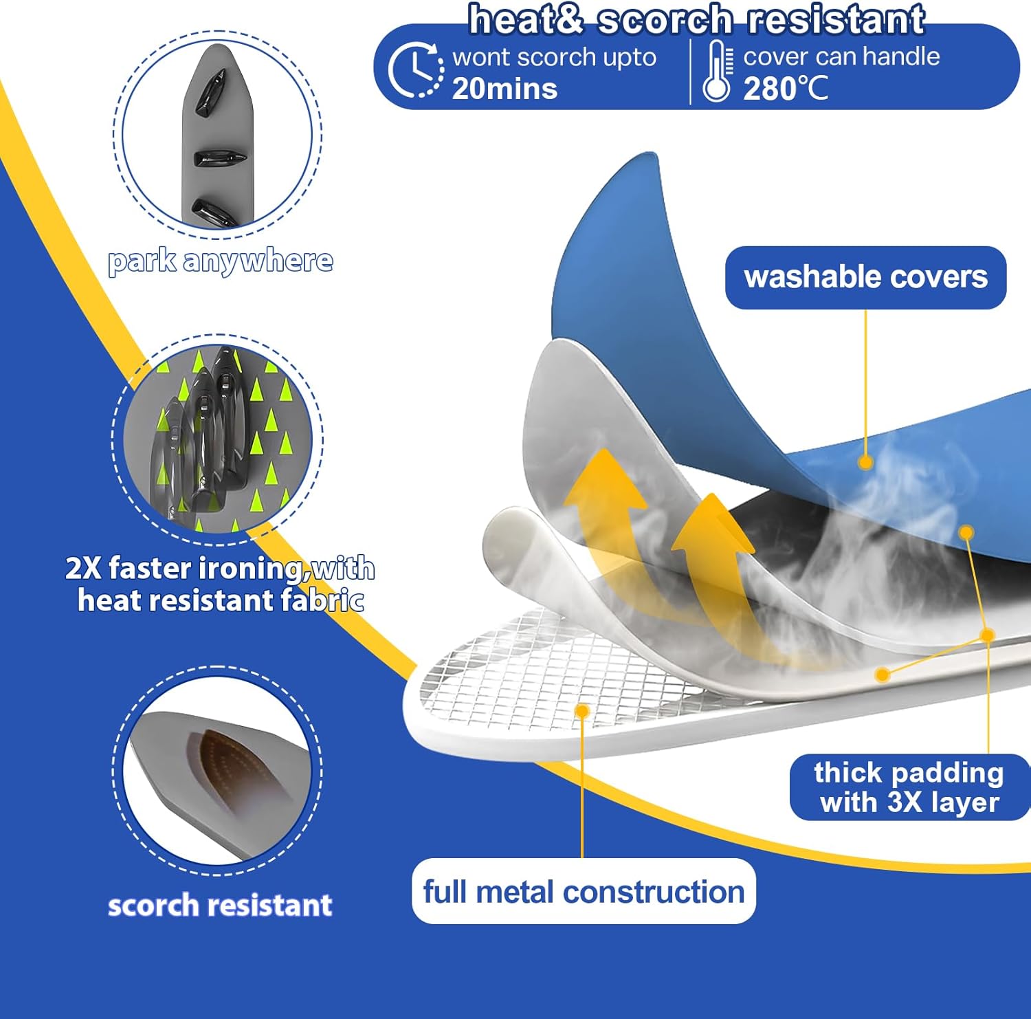 • 【Steam & Electric Iron Friendly】The tabletop ironing board has premium cotton cover and padding are gentle on all fabrics, including delicate garments. No marks, no damage—just a flawless, wrinkle-free finish every time.