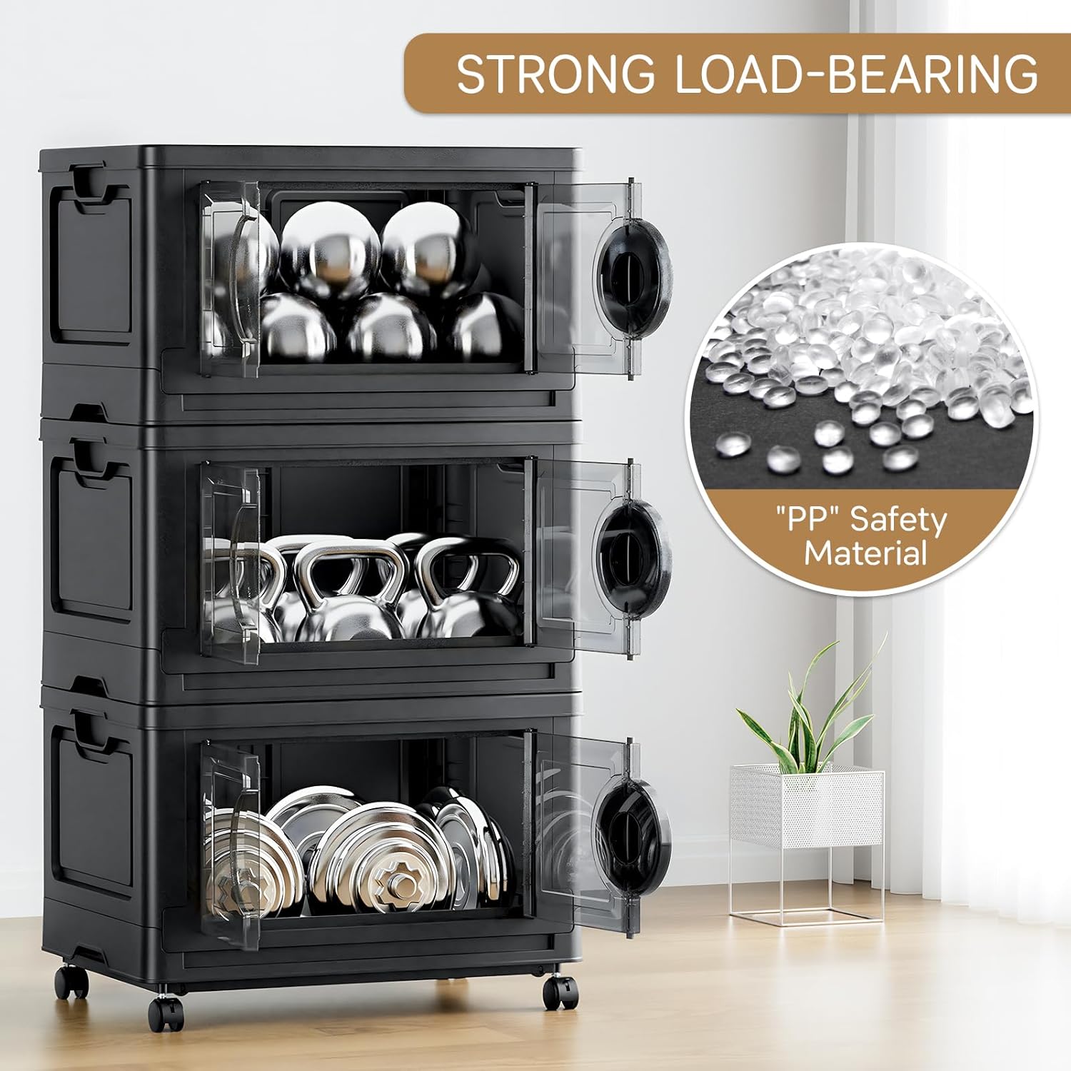 • Dual Handles & Smooth Rolling Wheels: Equipped with comfortable side handles and lockable 360° swivel wheels, this collapsible storage organizer makes lifting and moving effortless for all users