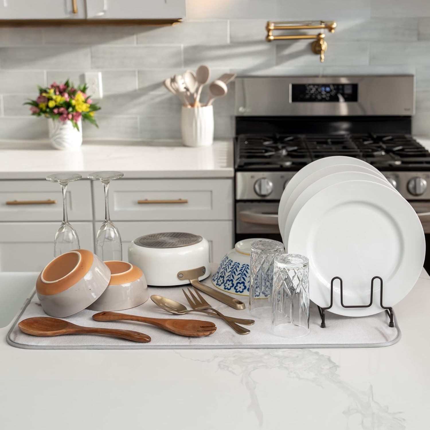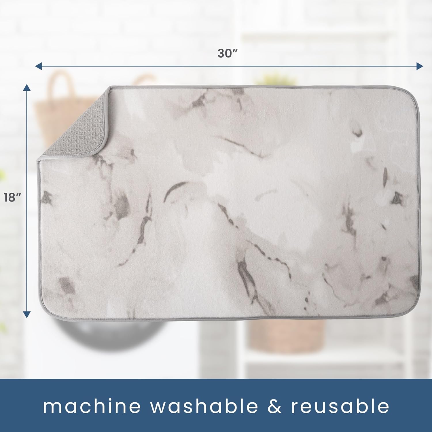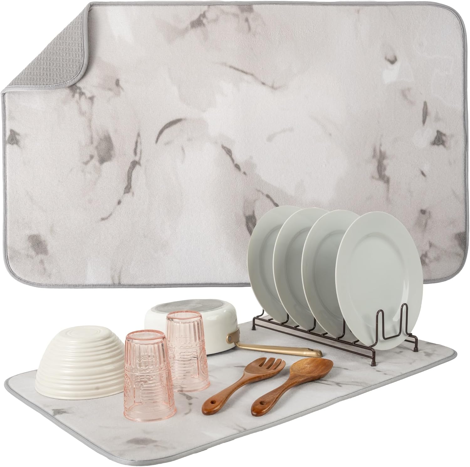 • Dish drying mats for kitchen counter are reusable, machine washable, and easy to store for kitchen organization; durable construction will not chip or break like a stone dish drying mat for kitchen