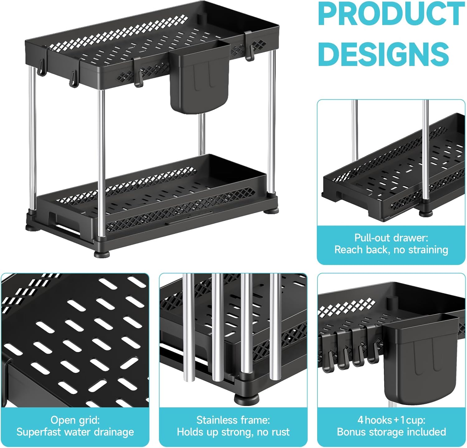 • DESIGNED FOR DURABILITY: Made with high-grade, thick plastic material and robust stainless steel rods, this under sink organizer easily supports heavy bottles and cleaning products without bending—a long-lasting tidying solution you can count on