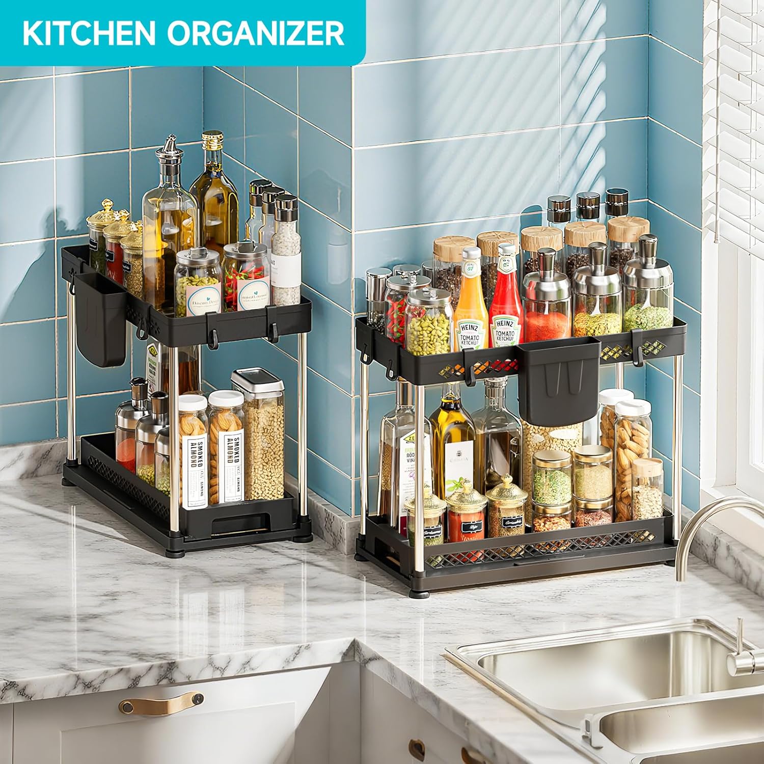 • MULTI-PURPOSE & STYLISH: Create valuable space in bathrooms, kitchens, pantries, or laundry areas. Featuring an intentionally simple design, this undersink organizer doesn’t just add space—it adds elegance to any cabinet interior
