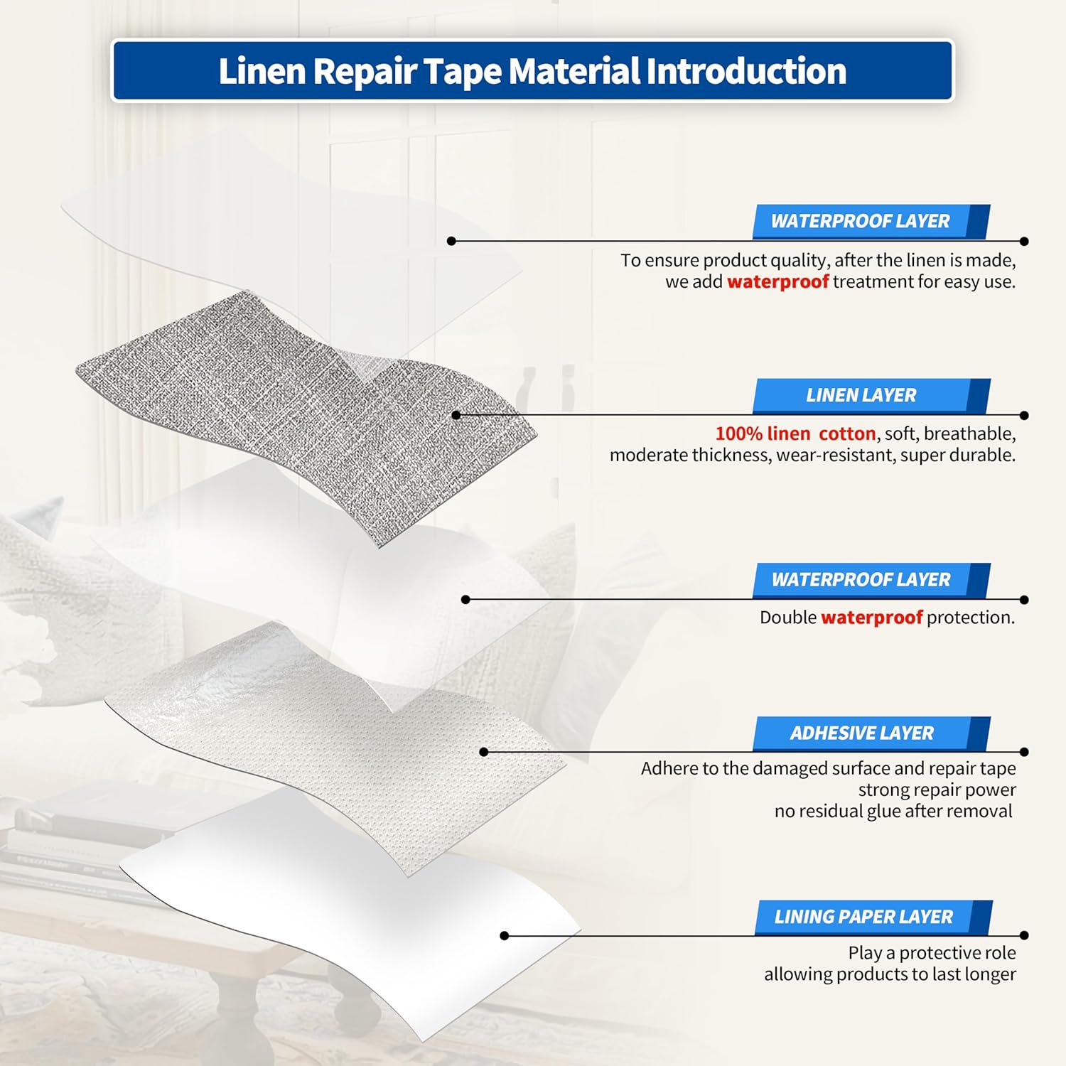 • Strong Self-Adhesive: The craftsmanship of the linen repair kit has been upgraded, using strong adhesive to ensure excellent bonding effect, specially developed for repairing various fabric products, ensuring that the repaired area can be used for a long time without easily falling off.