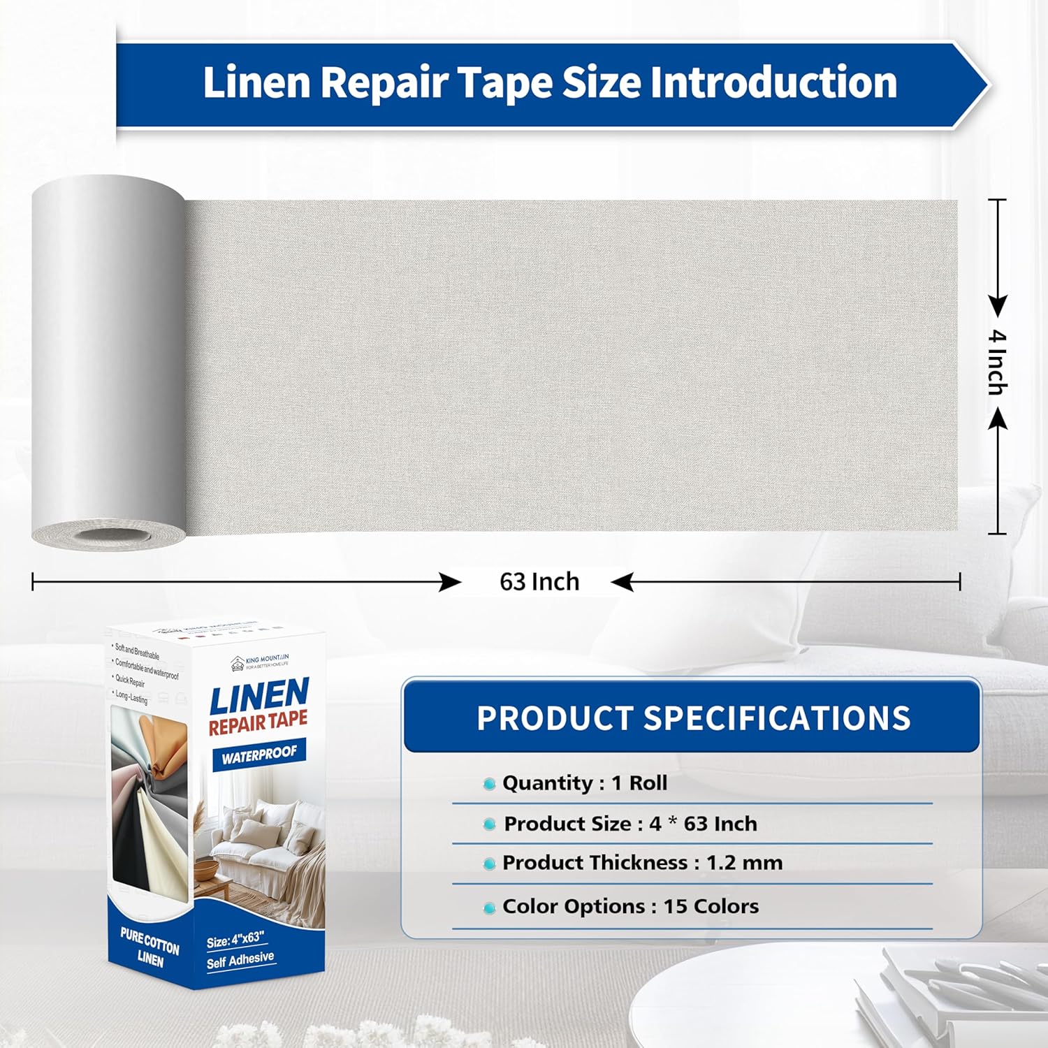 KING MOUNTAIN Linen Repair Patches, Self-Adhesive Fabric Patches, 4 X 63 inch Extra Size, Multi Color, Can be Used for Sofa Repair and Linen Clothes Repair (Beige)