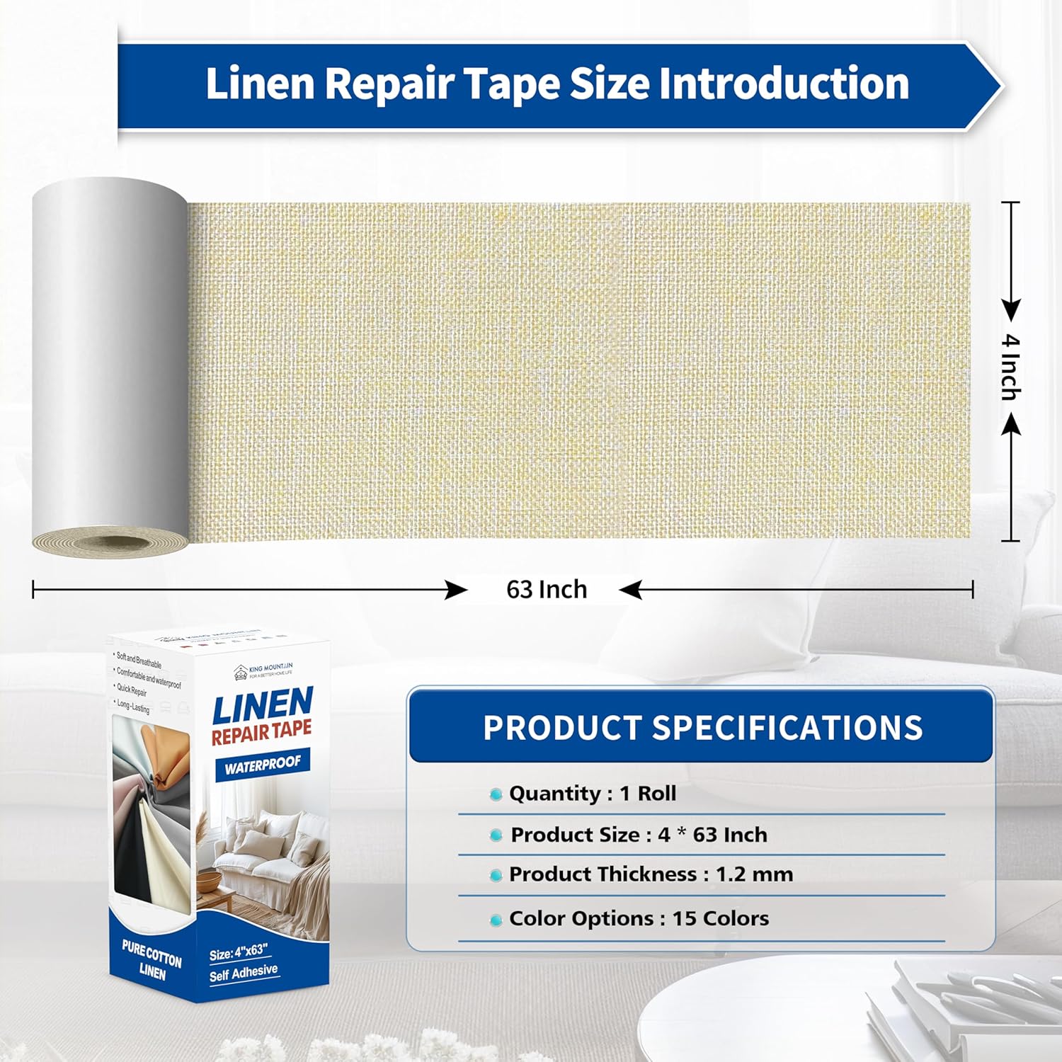 KING MOUNTAIN Linen Repair Patches, Self-Adhesive Fabric Patches, 4 X 63 inch Extra Size, Multi Color, Can be Used fo Sofa Repair and Linen Clothes Repair (Beige 1.0)
