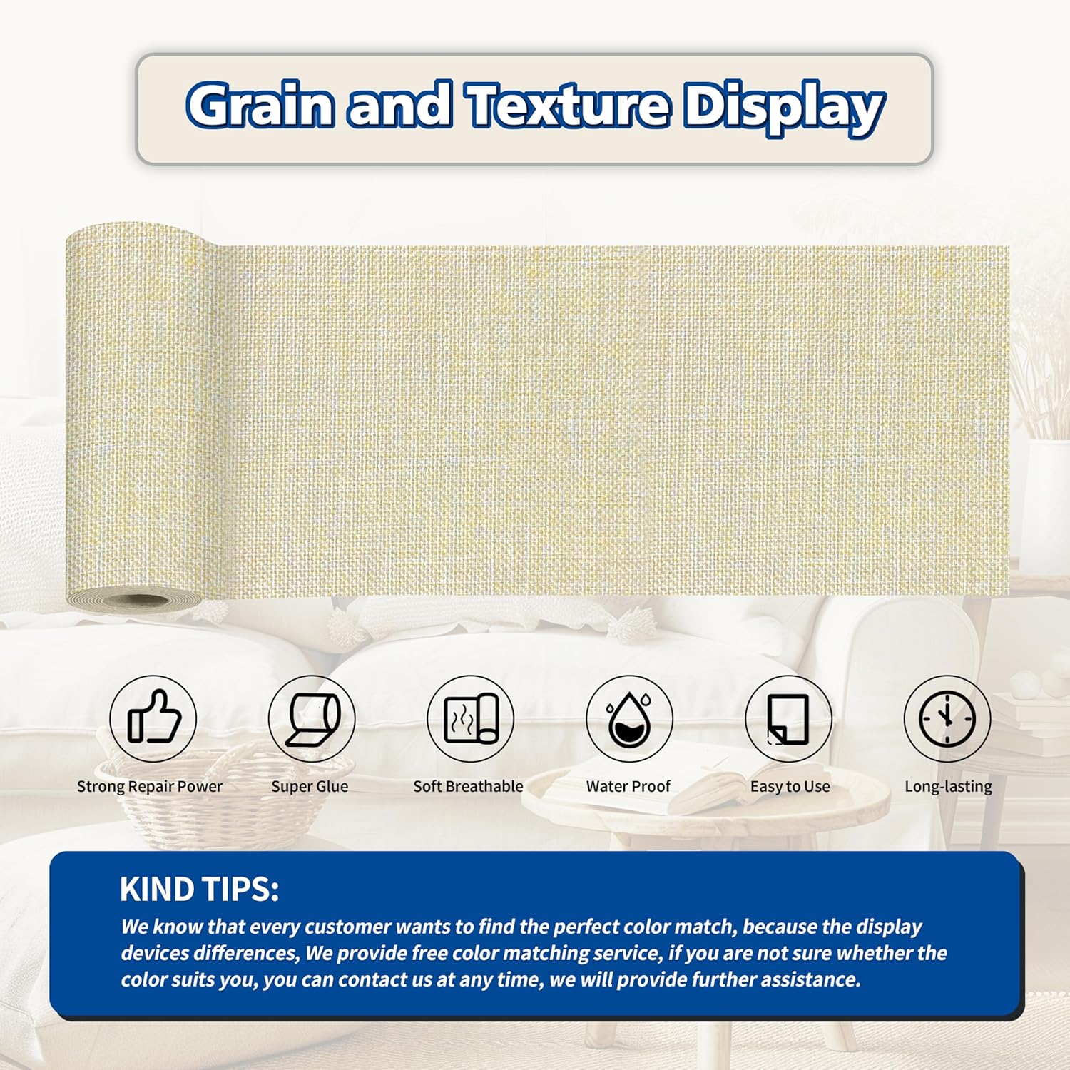 • Easy Application: Clean the damaged area, cut to the appropriate size, peel off the backing paper, and stick it to the damaged area. It only takes a few seconds to complete, and the repair effect is natural and tidy. Suitable for repairing linen products such as sofas, curtains, cushions, furniture, interior decorative fabrics, etc.