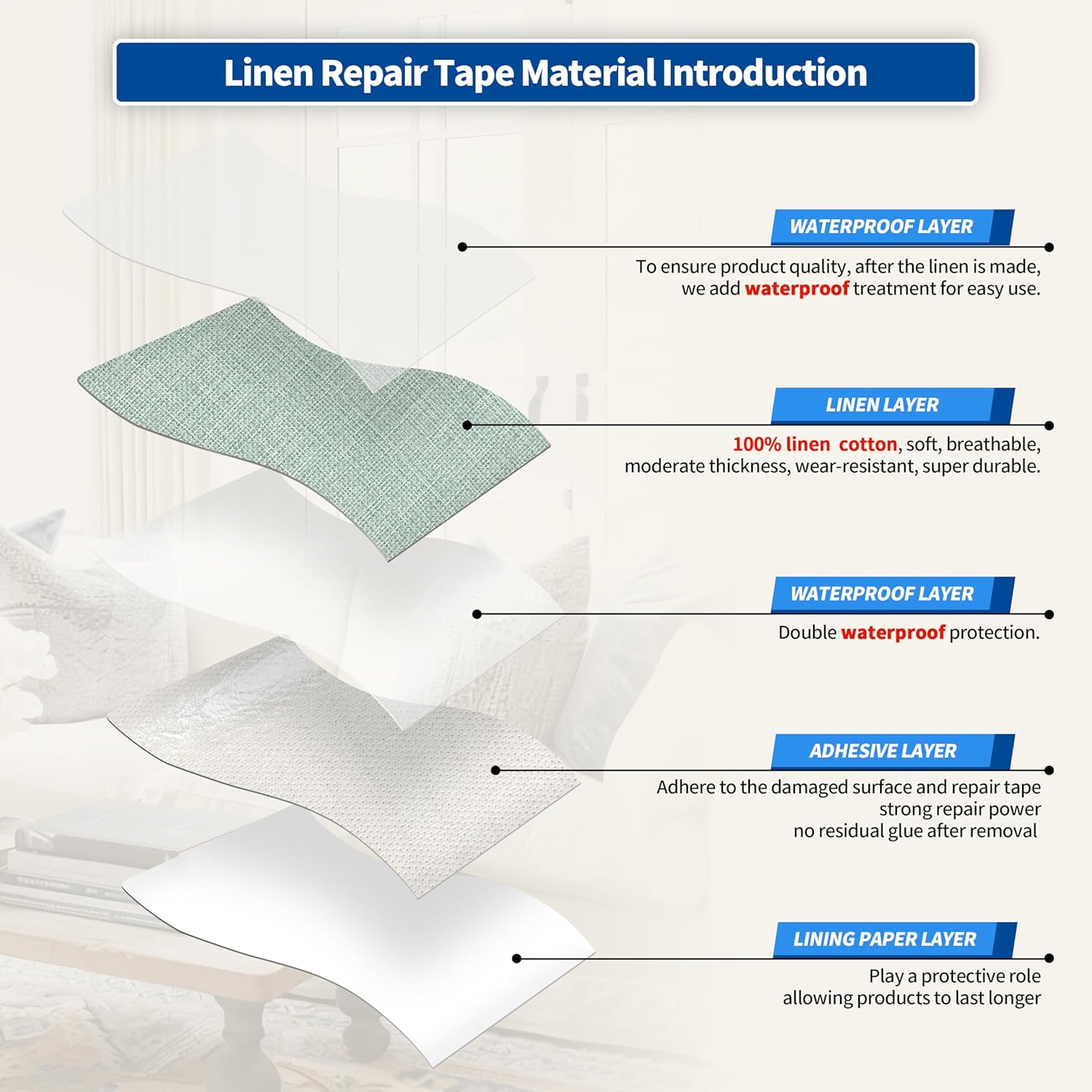 • Strong Self-Adhesive: The craftsmanship of the linen repair kit has been upgraded, using strong adhesive to ensure excellent bonding effect, specially developed for repairing various fabric products, ensuring that the repaired area can be used for a long time without easily falling off.