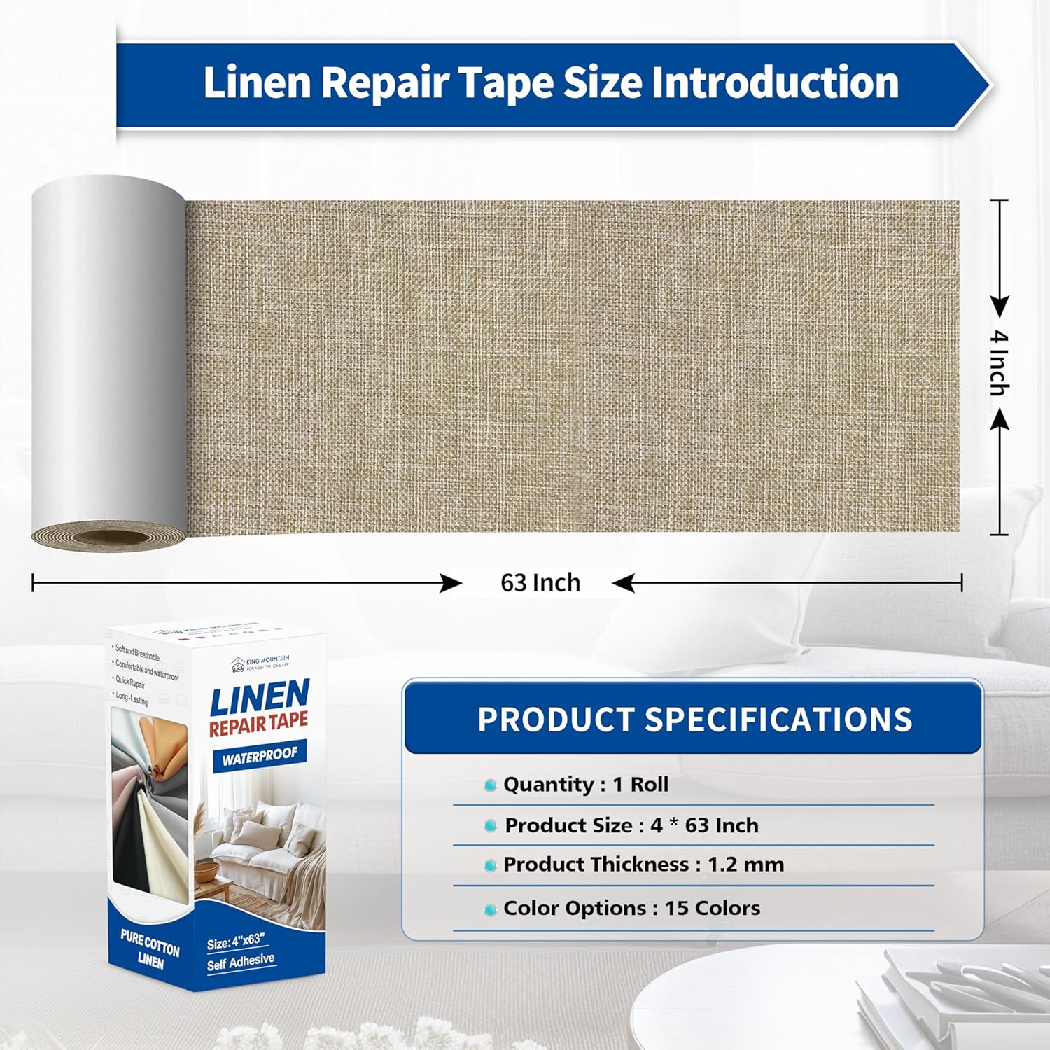 • Soft Fabric Repair Tape: Classic size 4" x 63", economical and practical, made of pure cotton linen repair tape, with a smooth and soft surface, comfortable and breathable, scratch-resistant and durable, it does not fade after long-term use, providing the comfort you desire while completing the repair.