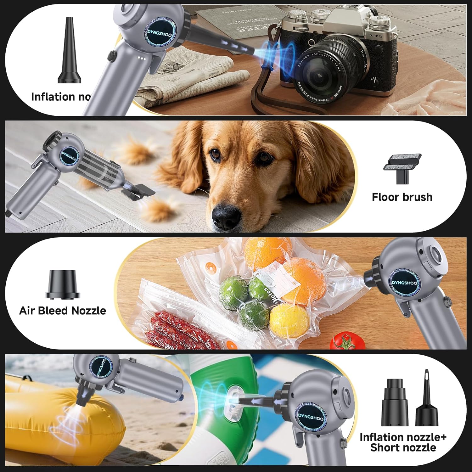 • 4-In-1 Multifunctional Mini Vacuum Cleaner】 The Automotive Car vacuum cleaner is designed to meet a variety of cleaning needs, including blowing, vacuuming, and pumping. It is not only suitable for cleaning hard-to-reach crevices such as computer keyboards and mainframes, but also effective in removing large stains from sofas, seats, and other areas. With its various attachments, this multifunctional car accessory ensures that every inch of your car seats – even those covered in dirt, leaves, and sand after every ride – can be meticulously cleaned up in a matter of seconds.
