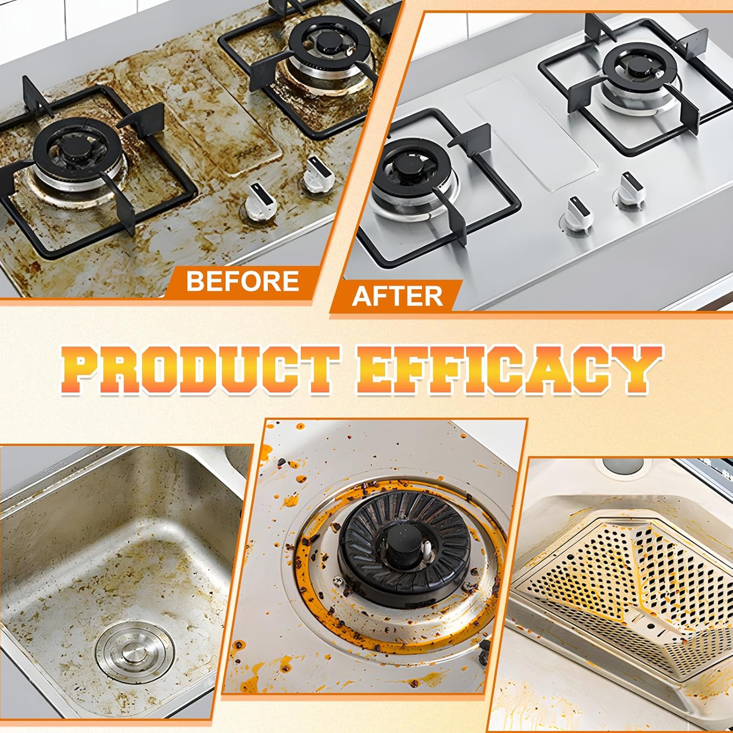 • Heavy-Duty Grease Removal: Effectively breaks down stubborn grease,oil,and baked-on food with ease. Ideal for stovetops,ovens,range hoods,and grills,cleans thoroughly without the need for harsh scrubbing or abrasive cleaning tools