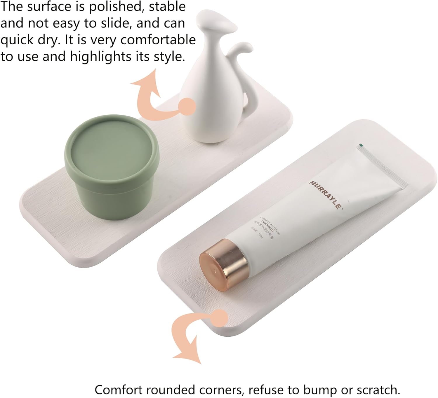 2 Pcs Water Absorbing Stone Trays, Kitchen/Bathroom Sink Soap Dish, Diatomite Tray Used for Hand Soap & Cosmetic Bottles in The Modern Home, 4" W x 9" L, White