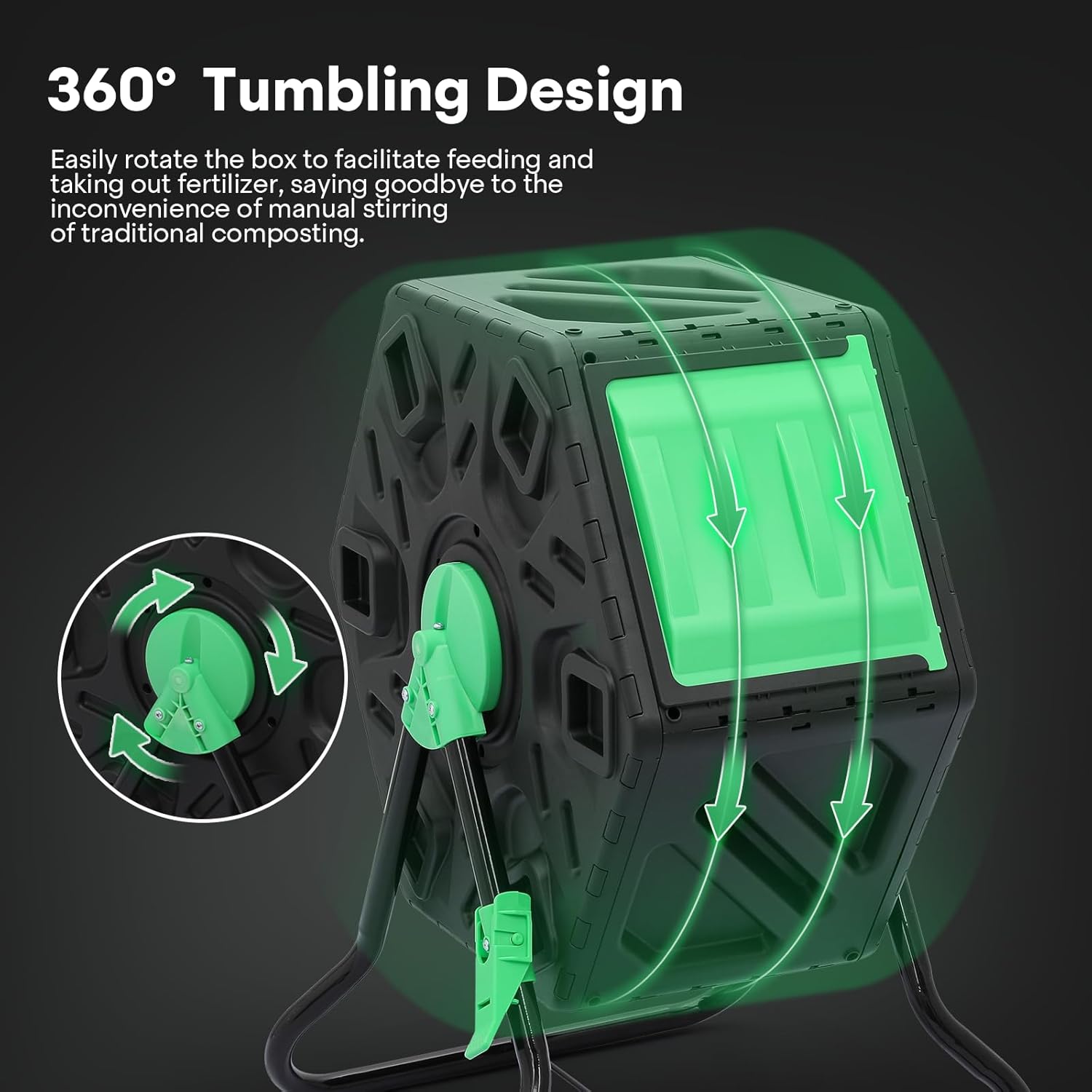 • Heavy-Duty & Weather-Resistant Build – Constructed with BPA-free, UV-protected PP plastic and a powder-coated steel frame, this compost bin resists cracking, rust, and fading under sun, rain, and snow. Perfect for year-round composting in any climate.