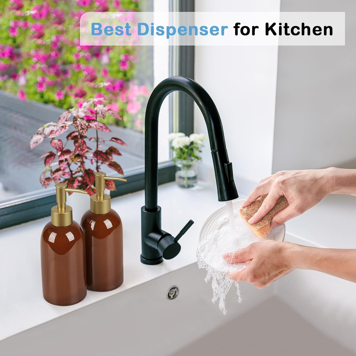 Natheeph 14OZ Ceramic Soap Dispenser Ceramic Soap Pump Dispenser Can Fill Liquid for Bathroom/Kitchen (2PC Brown)