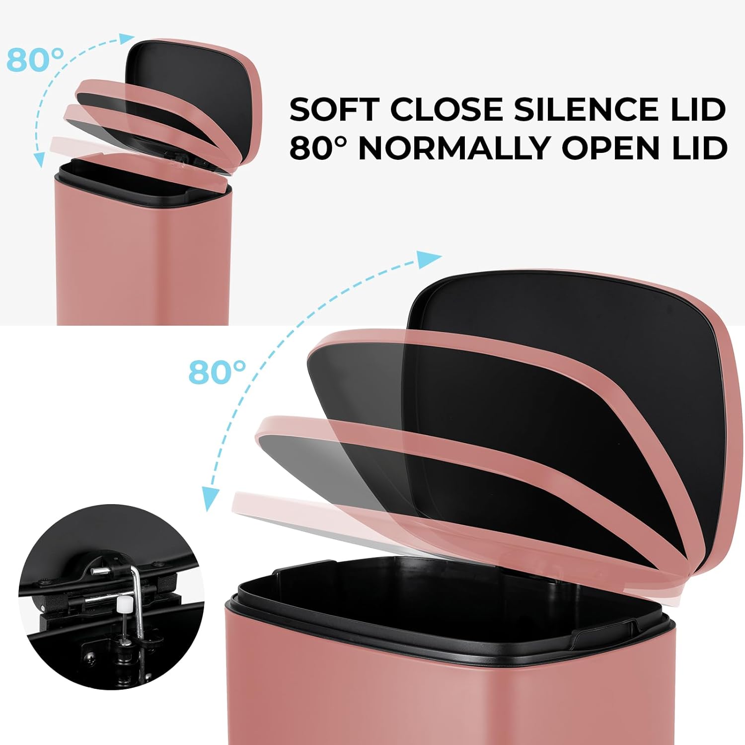 • Large&Enduring Foot Pedal: Stainless trash can features 5.9" wide pedal, providing a comfortable stepping surface, making it effortless to open the lid. It is crafted from sturdy stainless steel ensuring smooth and reliable operation for years to come