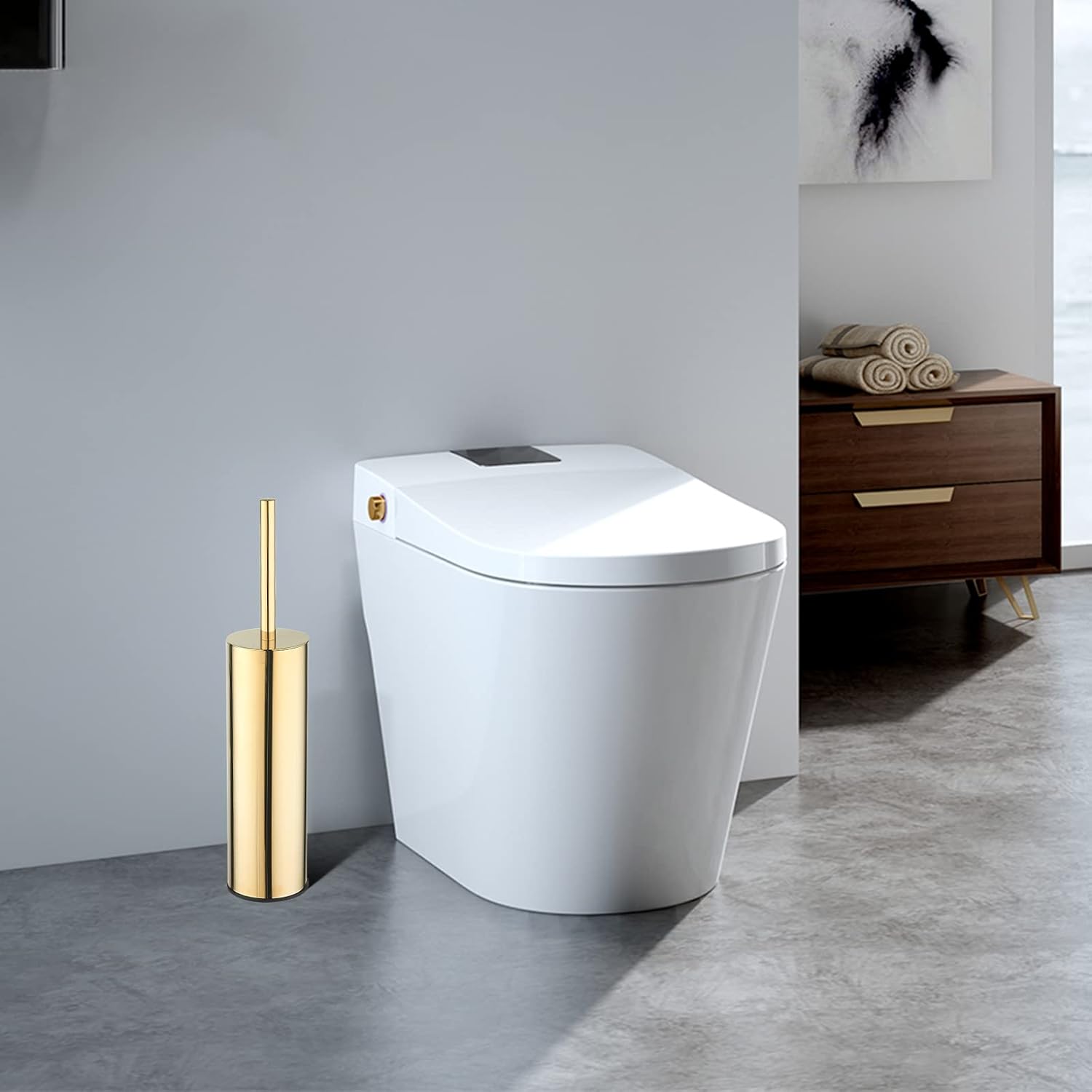 • 4. Closed Design with Non-Slip Base - The sealed holder keeps the brush hidden when not in use, preventing odors from spreading. A black non-slip ring at the base ensures stability and protects tiles from scratches.