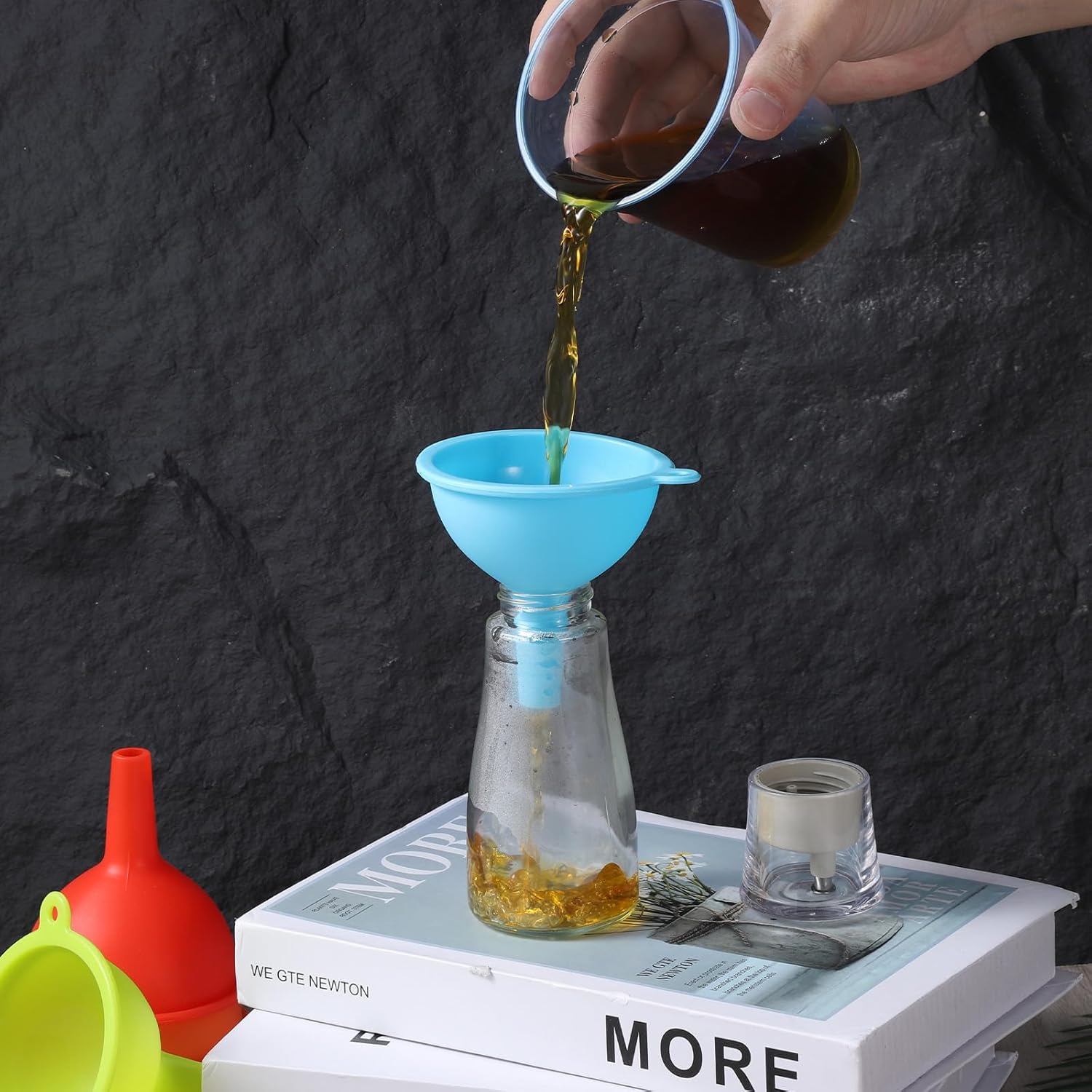 • 【Complete Funnel Set】This 4-piece silicone kitchen funnel set provides versatile solutions for all your transferring needs. The set includes two different sizes specifically designed for wide mouth jars and narrow neck bottles, allowing you to handle various containers from spice jars to large canning jars. Made from flexible food-grade silicone, these funnels won't crack or break like plastic alternatives and maintain their shape during use, making them perfect for both liquid and dry ingredients transfer.