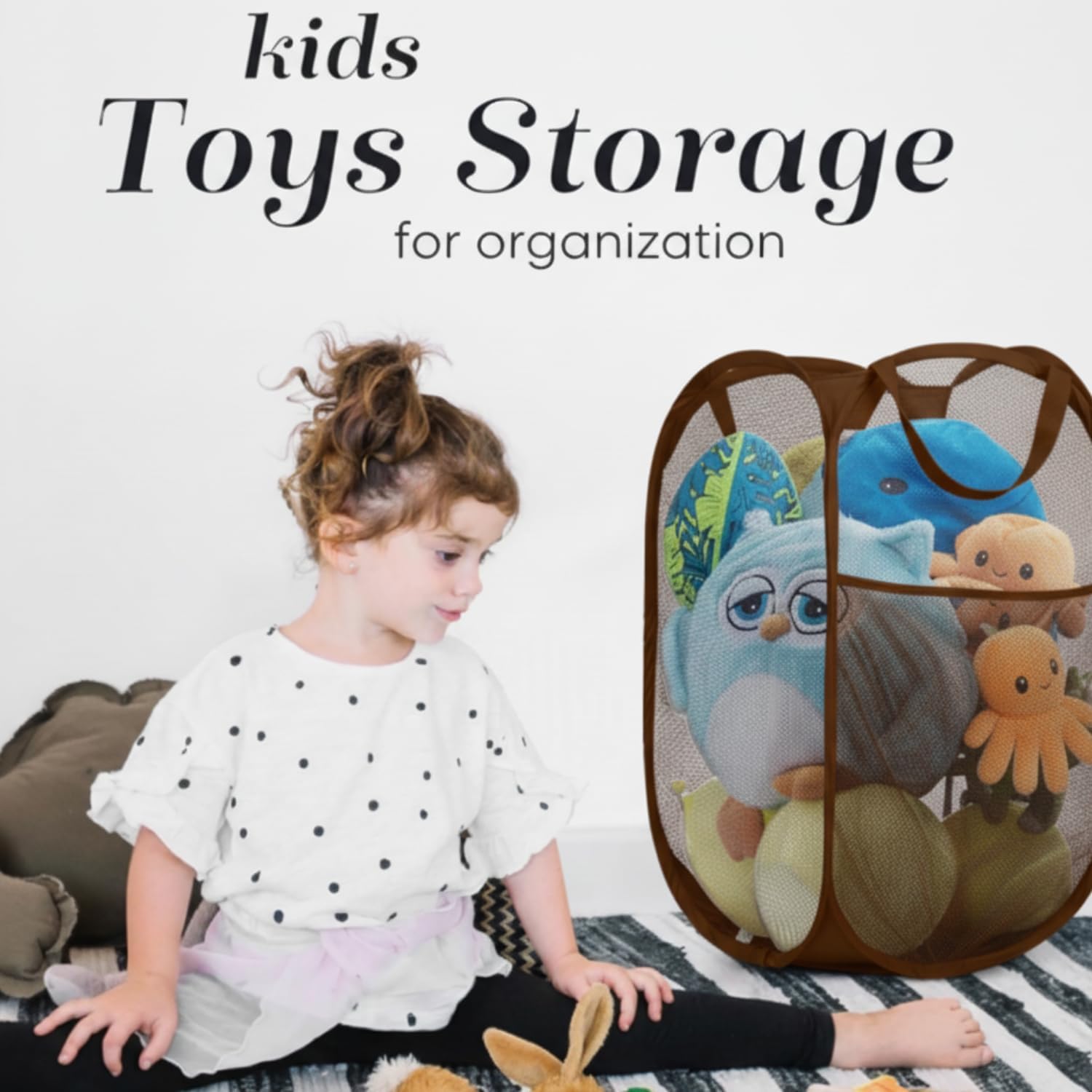 Handy Laundry Collapsible Mesh Pop Up Hamper with Wide Opening and Side Pocket - Breathable, Sturdy, Foldable, and Space-Saving Design for Clothes and Storage (Brown)