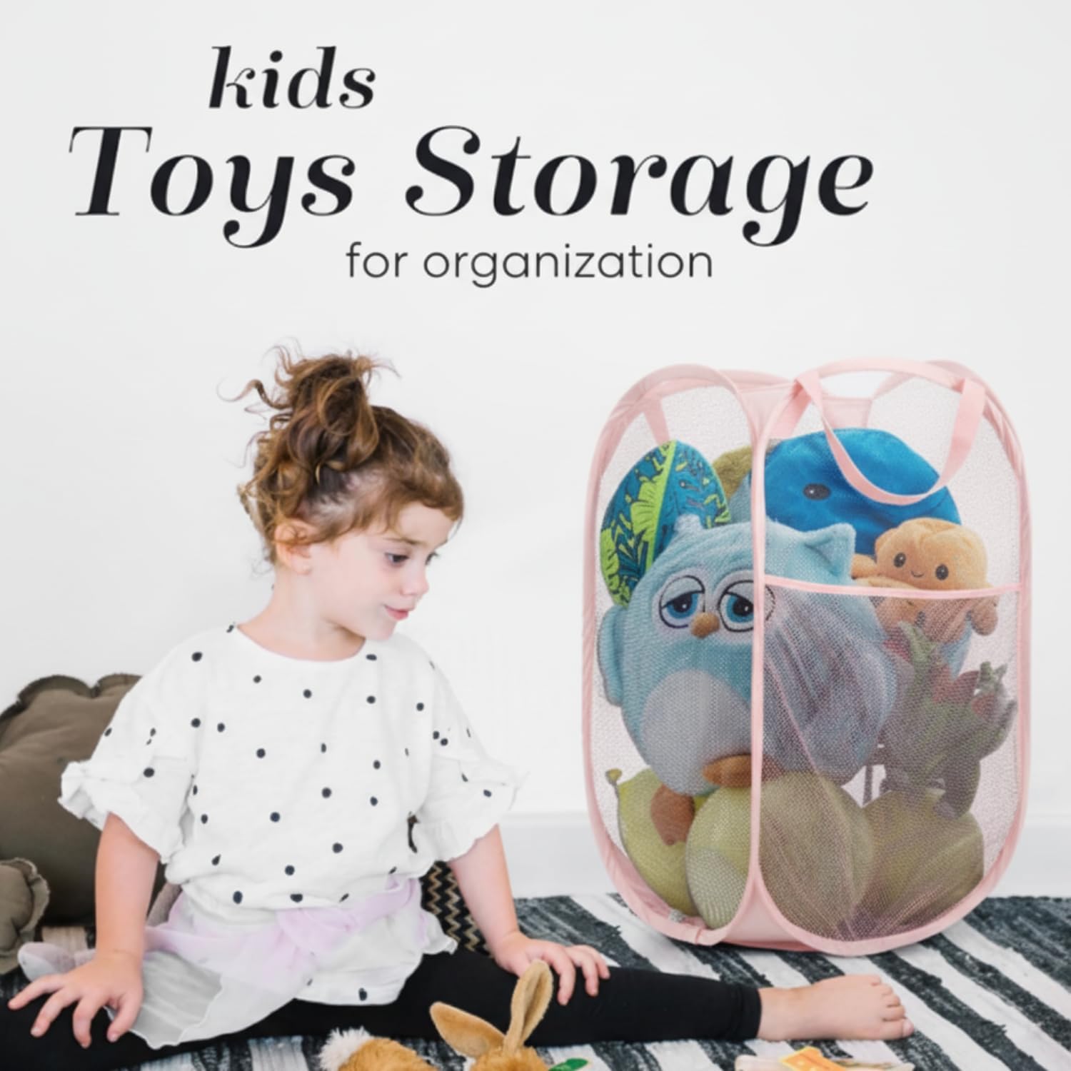 Handy Laundry Collapsible Mesh Pop Up Hamper with Wide Opening and Side Pocket - Breathable, Sturdy, Foldable, and Space-Saving Design for Clothes and Storage (Pink)