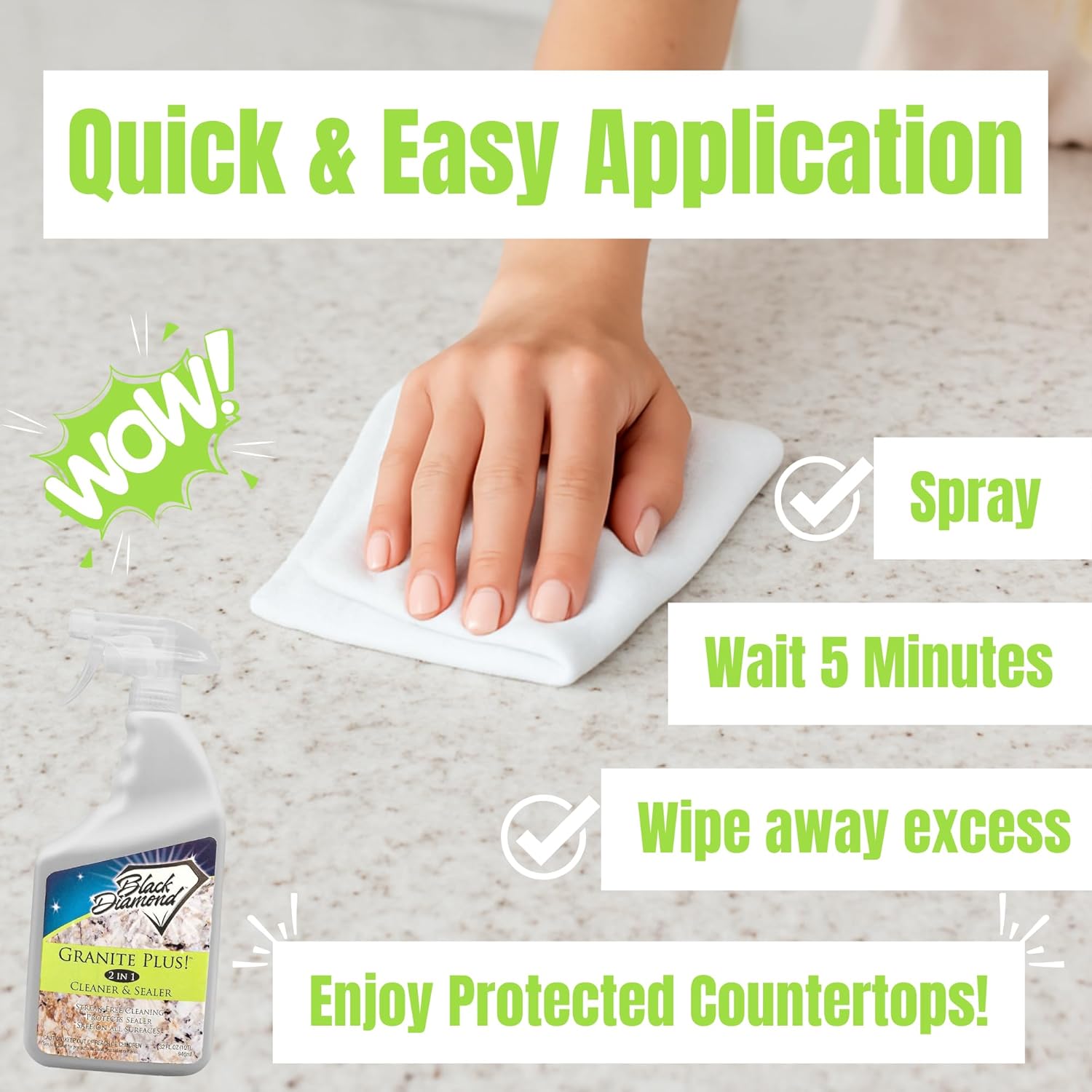 Granite Plus (Cleaner & Sealer) Deep Cleans & Seals All Natural Stone Countertops + Ultimate Grout Cleaner with Brush – Safe for Natural Stone - Acid Free - Lifts Dirt & Stains (2pack)