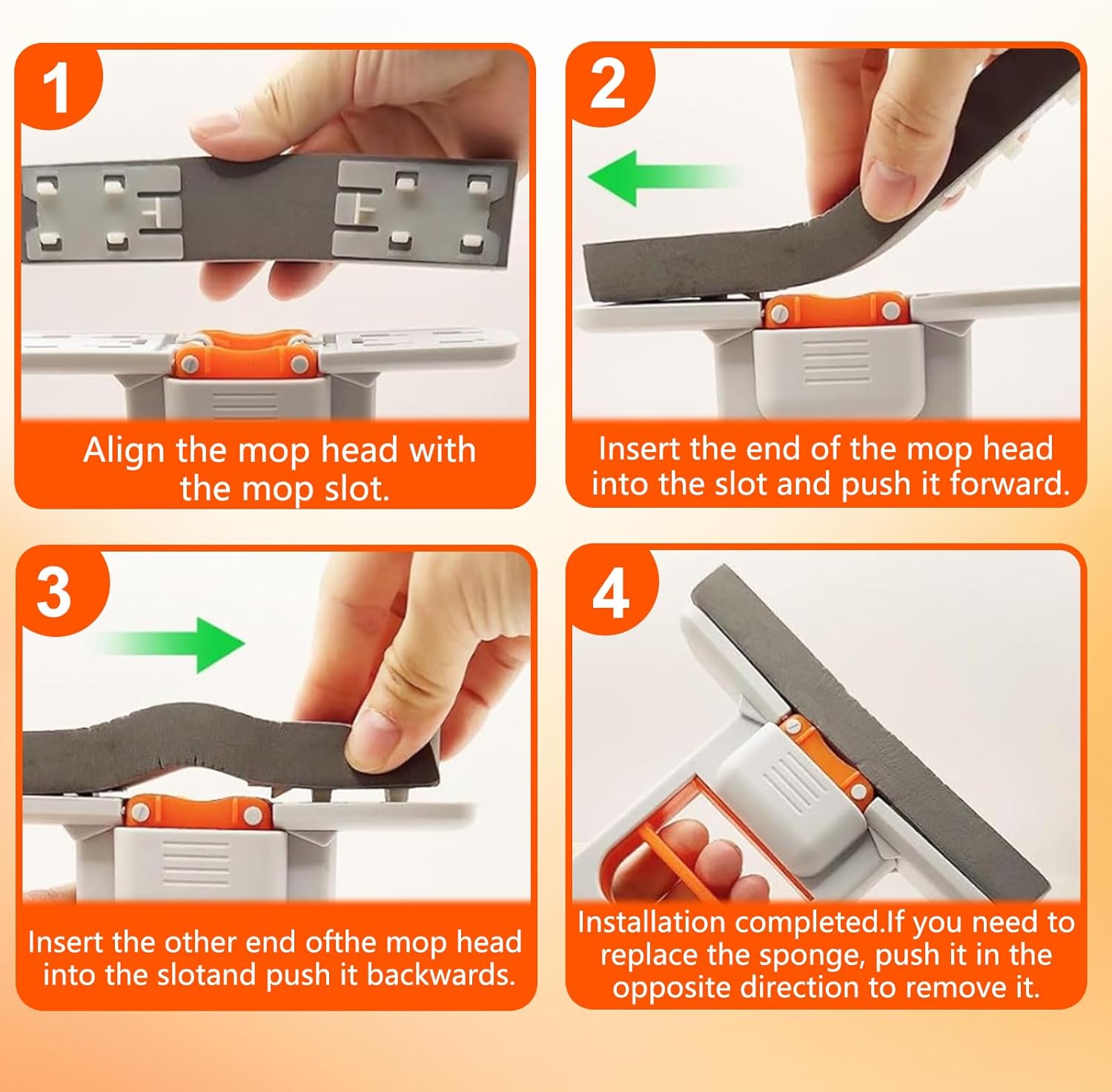 • 【Effortless Squeezing】The sponge mop head absorbs spills instantly, while the one-touch squeeze mechanism lets you wring out water effortlessly—no wet hands or messy drips! Ideal for quick cleanups on floors, countertops, and more