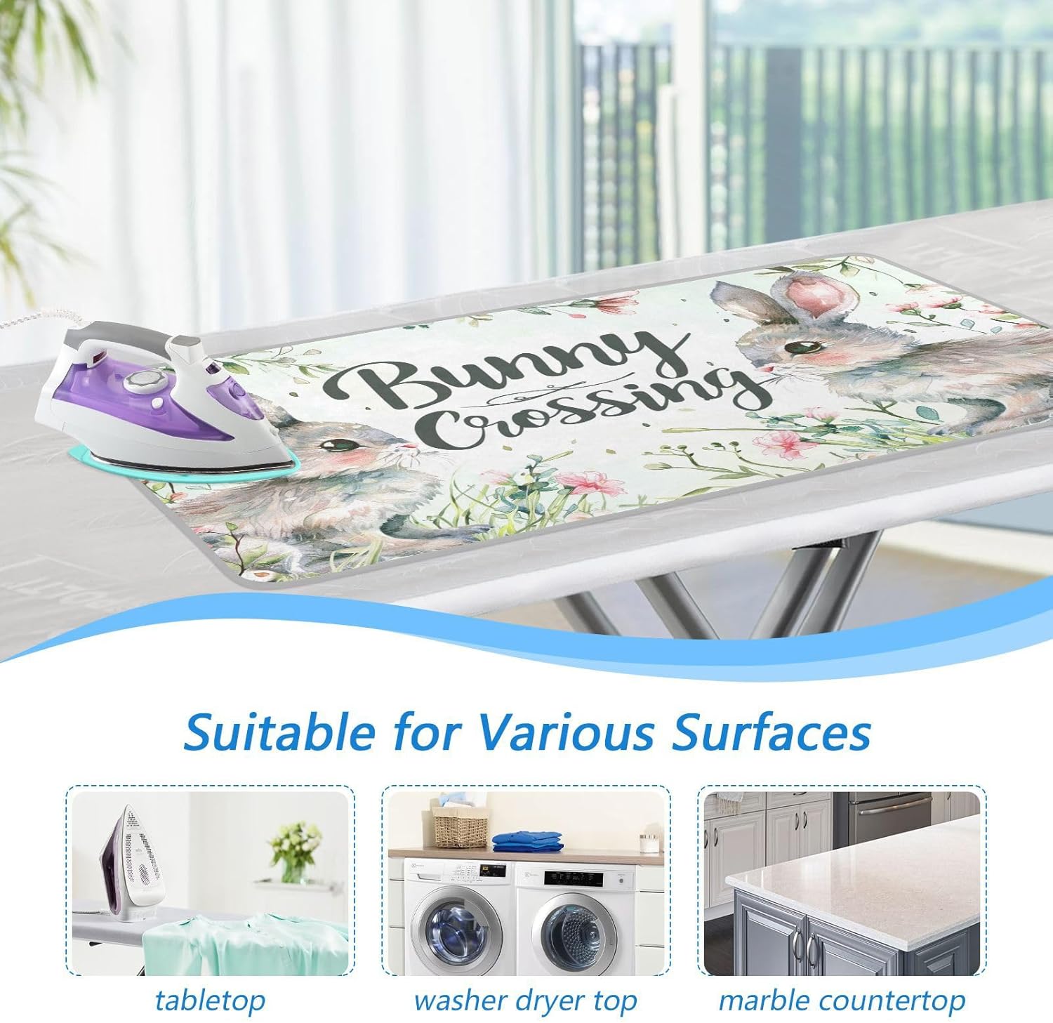 Ironing Mat Portable Ironing Pad Ironing Blanket for Table Top Heat Resistance Double-Side Using Travel Large 47.2 x 27.6 Inch Foldable Lightweight Easter Bunny Flower