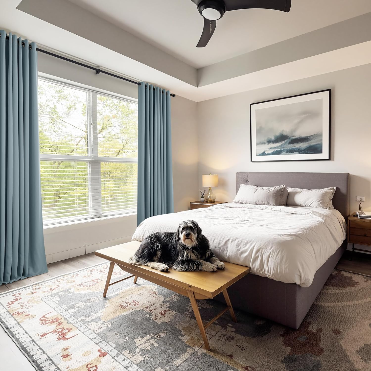 PONY DANCE Dusty Blue Blackout Curtains 80 inch Long 2 Panels Set, Thermal Insulated Solid Grommet Closet Curtains for Bedroom Closet Door, Temporary Doorway Cover Room Divider Drapes, W 55" x L 80"