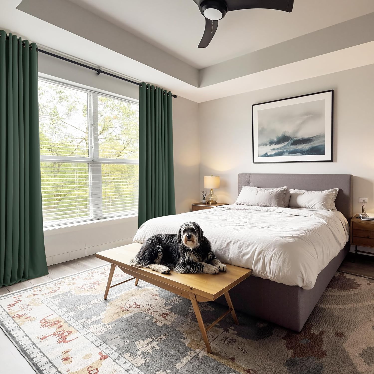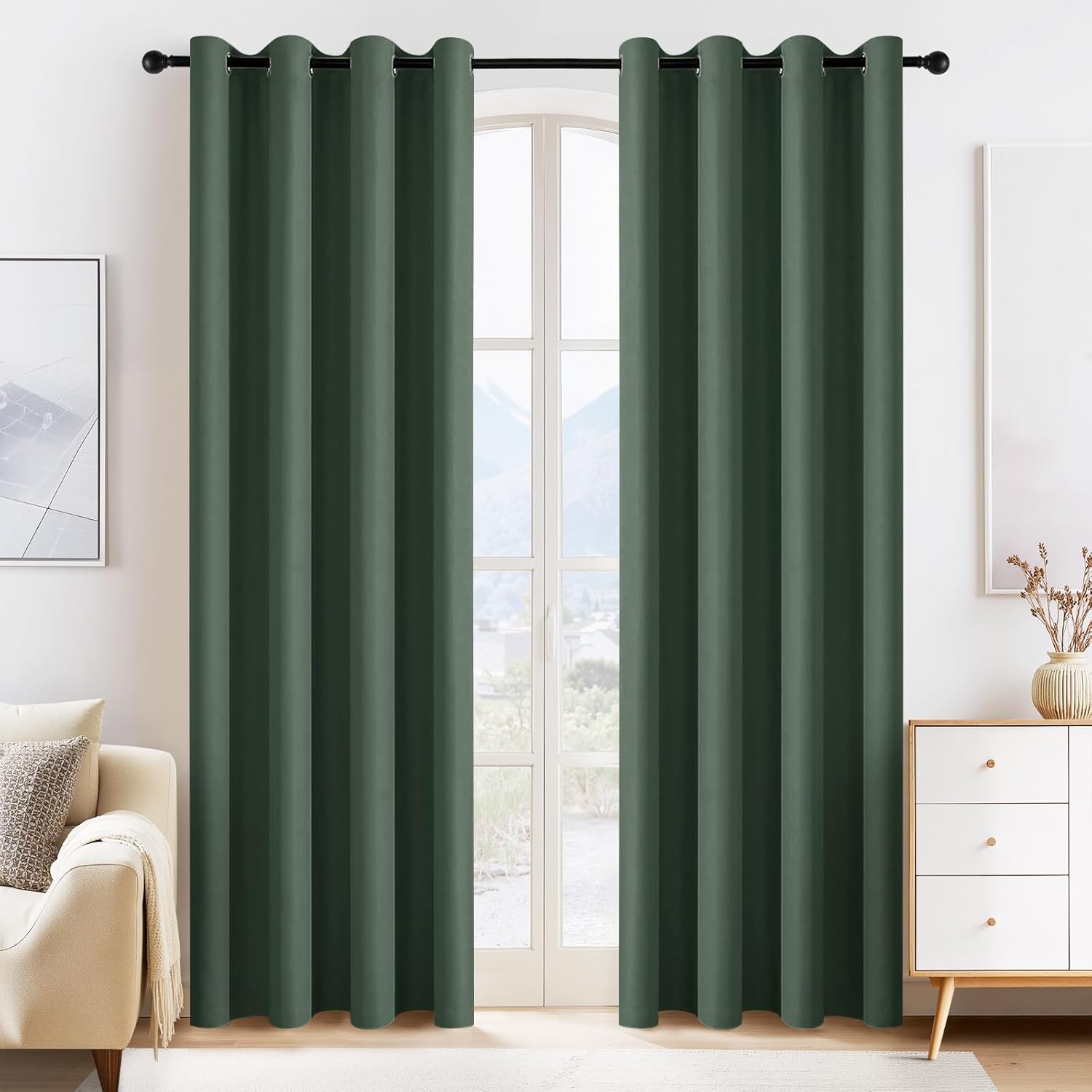 PONY DANCE Dark Green Blackout Curtains 80 inch Long 2 Panels Set, Thermal Insulated Solid Grommet Closet Curtains for Bedroom Closet Door, Temporary Doorway Cover Room Divider Drapes, W 55" x L 80"