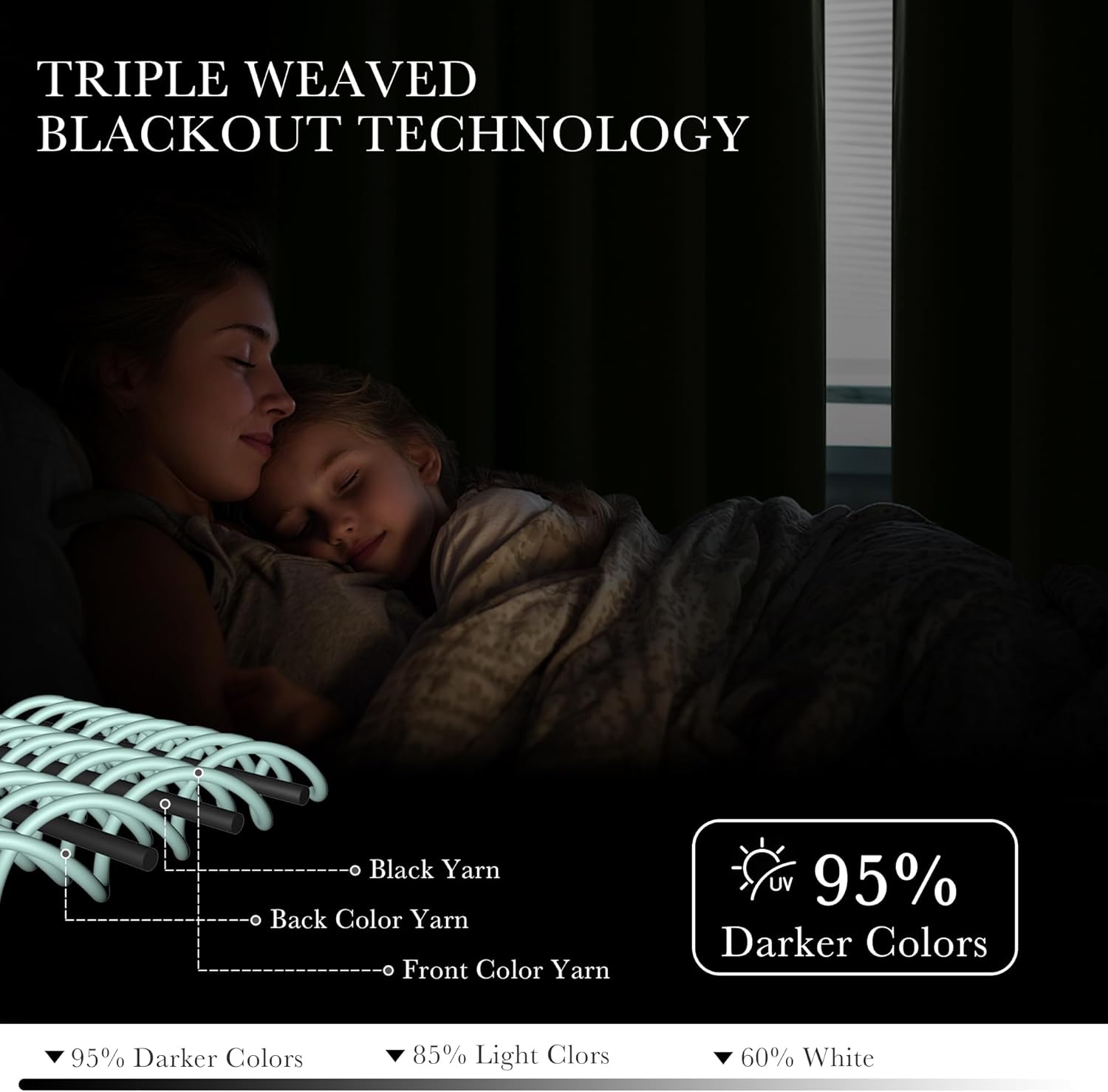 • Good Material - 100% soft polyester fabric. Curtain panels with no liner, fade-resistant, thread trimmed and wrinkle-free. Function 1. 90 - 100% blackout(dark colored works better); 2. Privacy protection; 3. Blocking cold air into the house like a temporary shield or room divider screen.; 4. Soundproof curtains reduce noise from outside or from other room.