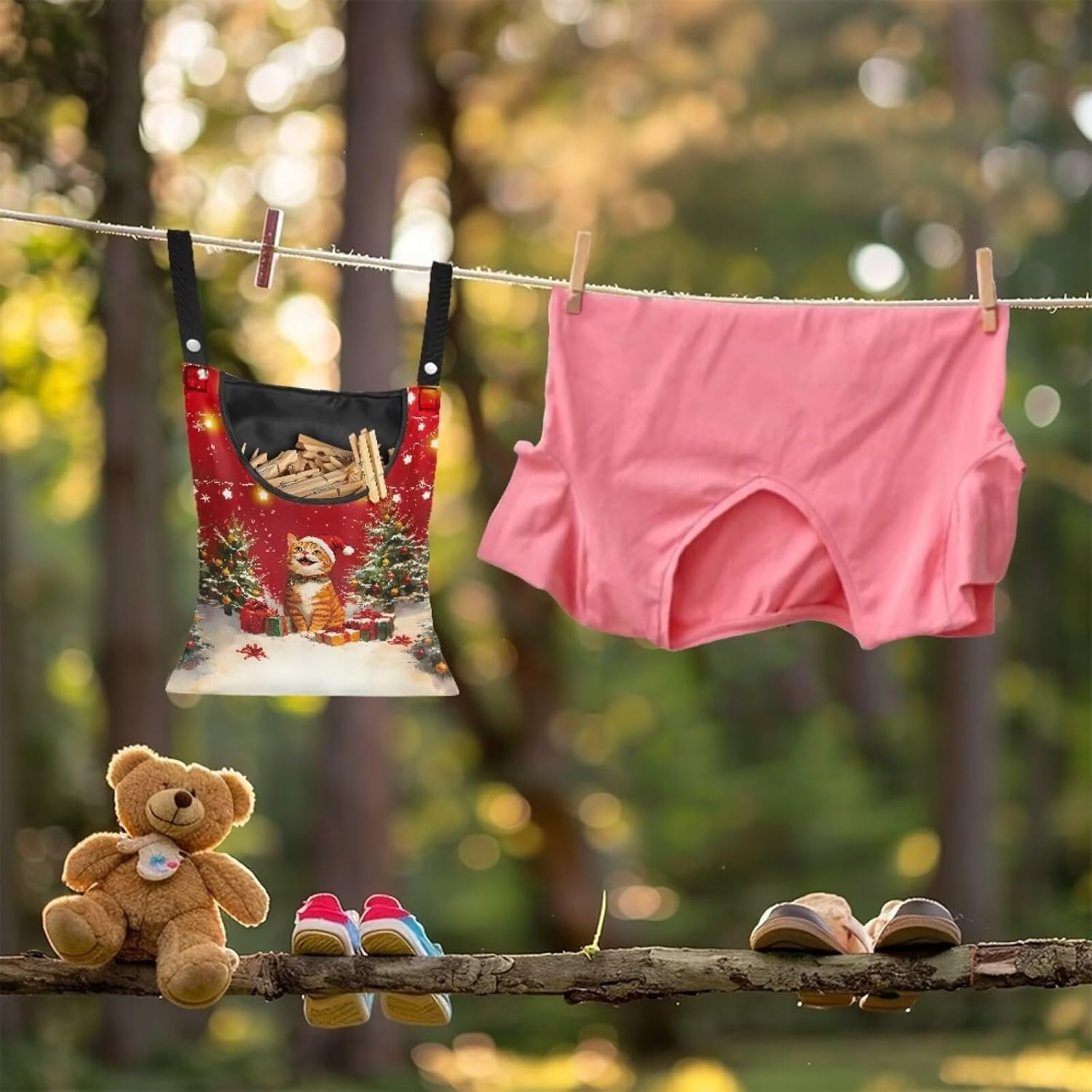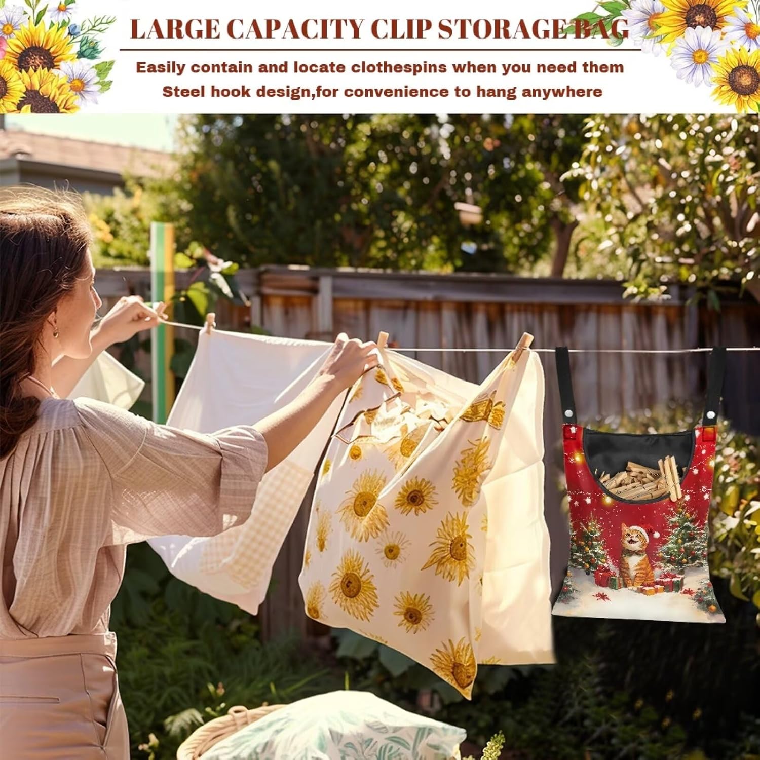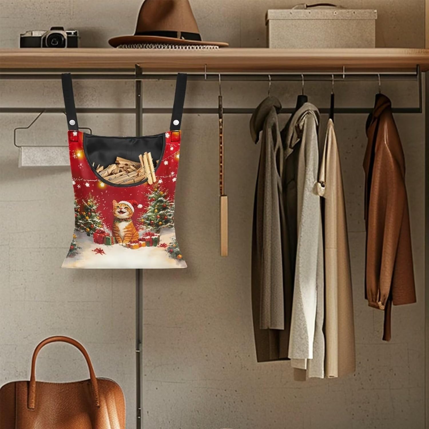 2025 Christmas Cat Waterproof Clothespin Bag with Hanging Rope - 14.5x12 Inch Storage Organizer for Home, Backyard & Camping