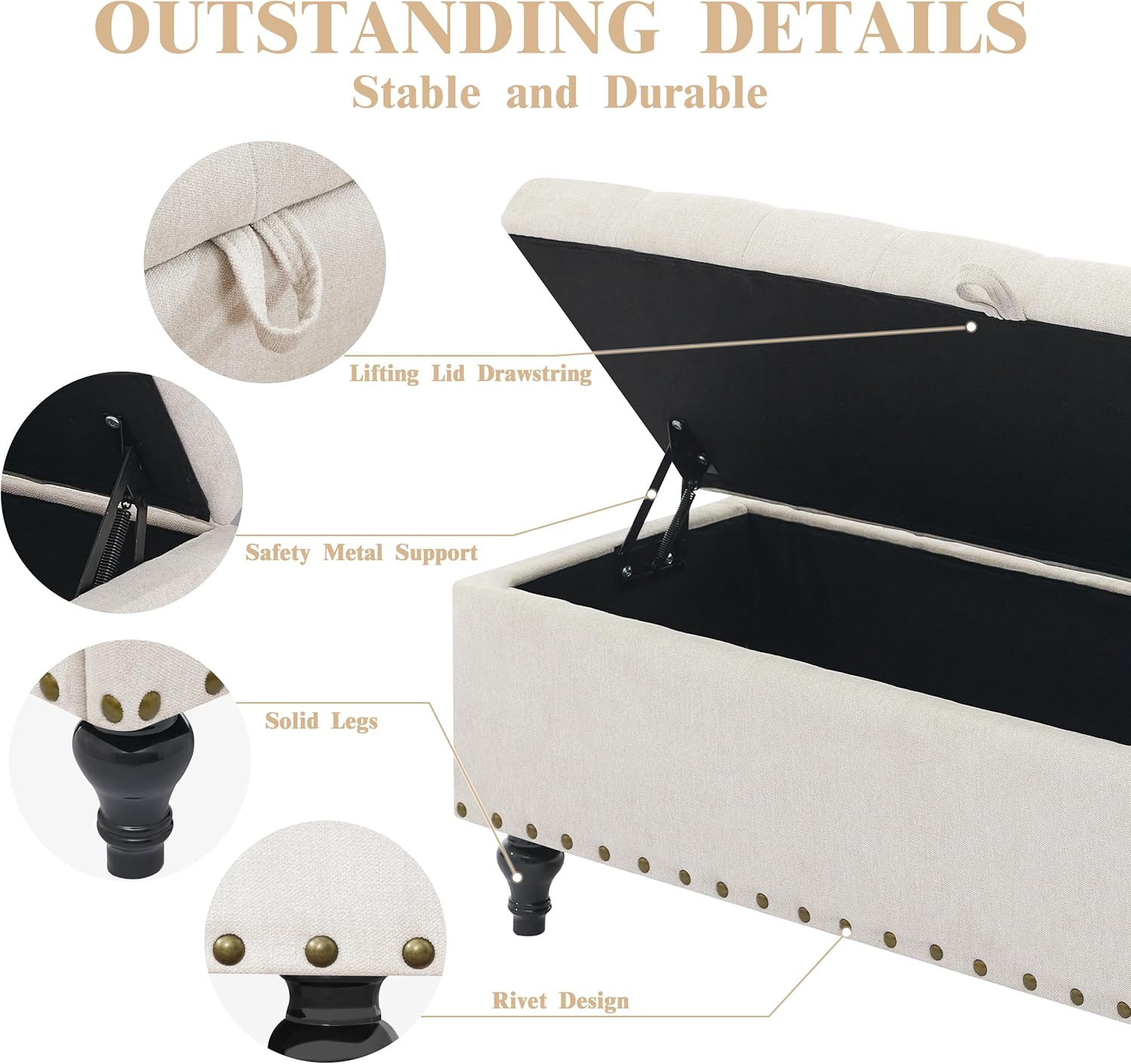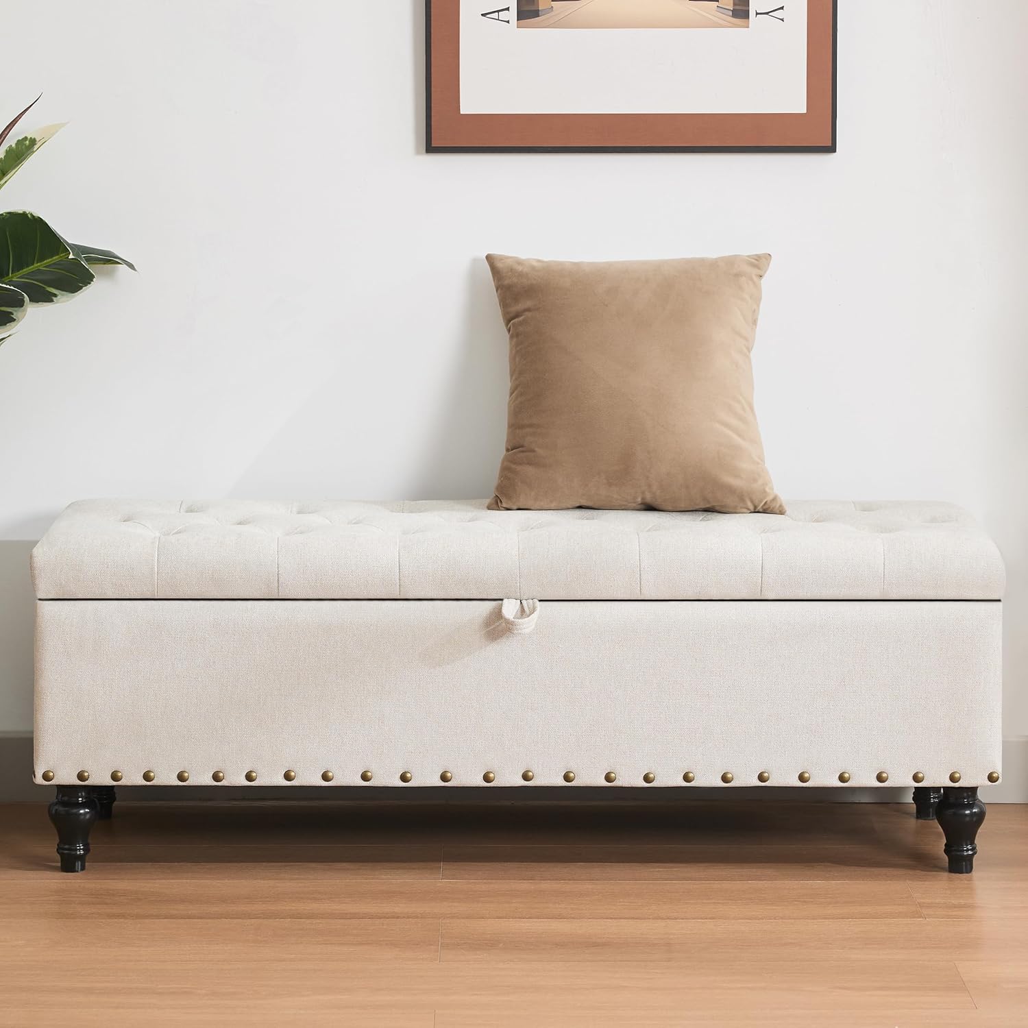 50" Storage Ottoman Bench, Tufted Ottoman with Storage for Living Room, Large End of Bed Ottomans, Modern Entryway Benchs, Window & Bedroom Benches for Foot of Bed (Light Beige)