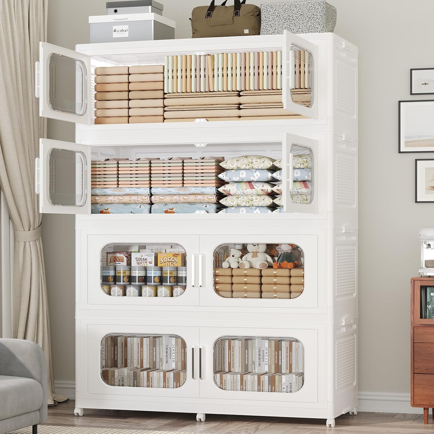 • 【Two Ways to Open & Magnetic Easy Access】The collapsible storage bins with doors and wheels feature a dual access way, allowing for both top and front door openings, and with clear brown windows for easy visibility. The extra large storage bins with open front doors are equipped with magnetic lock buckles to prevent dust from entering the cabinet.
