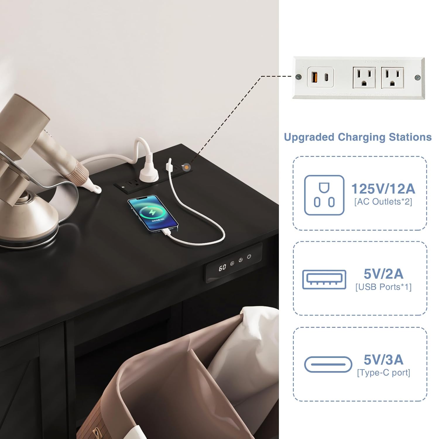 Double Tilt Out Trash Can Cabinet, 10 * 2 Gallon Garbage Trash Bin with Charging Station and Deodorizing Function, Dog-Proof Storage Cabinet for Hidden Bathroom Laundry Hamper, Black