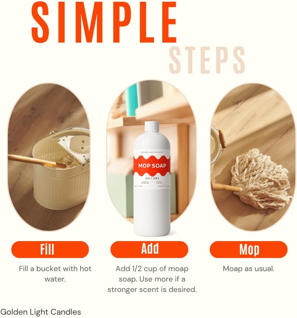 Mop Soap – Highly Scented Luxury Floor Cleaner Concentrate – Volcano Scent, Leaves Floors Shiny Without Any Residue – Multi-Surface Floor Mopping Solution, Made in USA, 32 oz