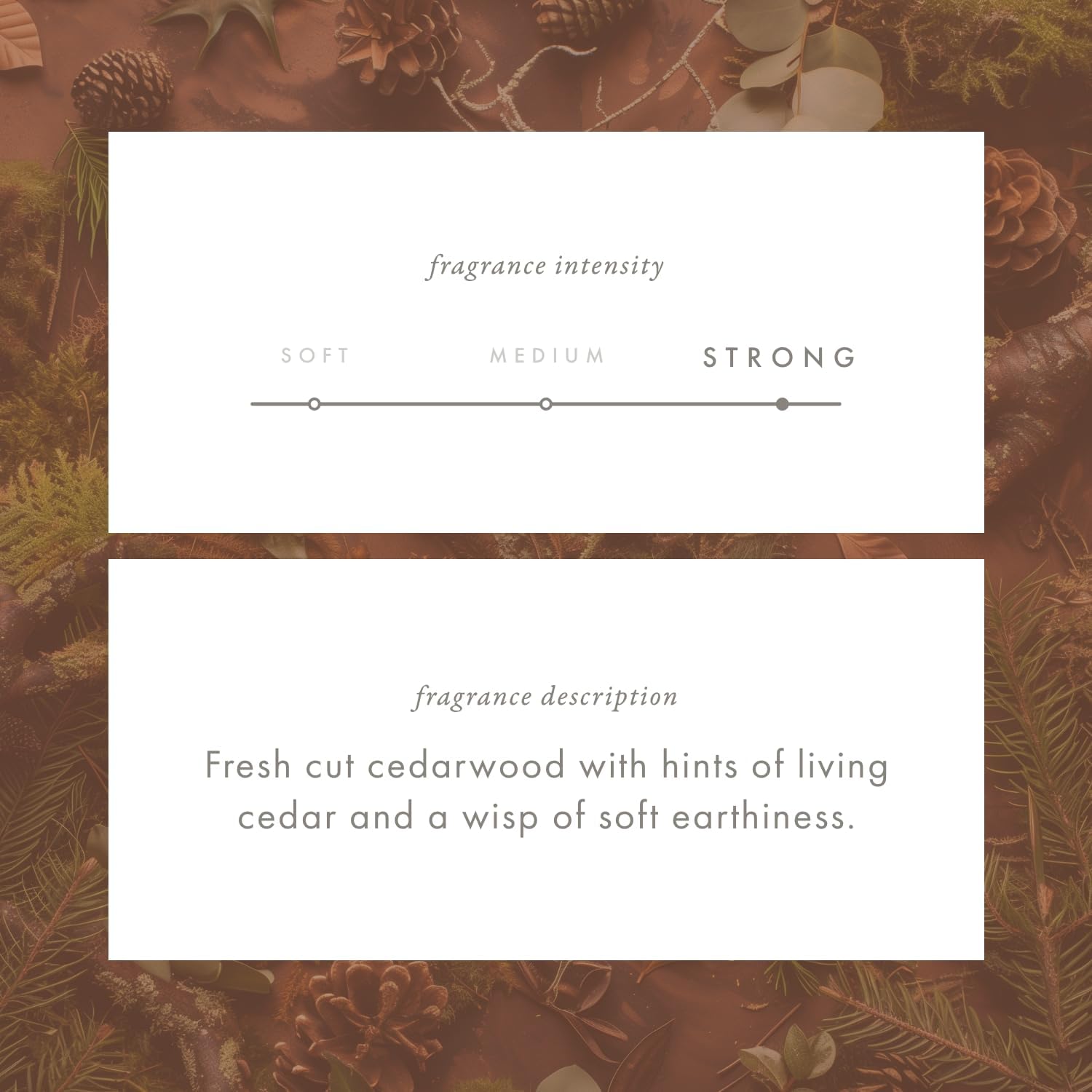 • Warm & Inviting Cedarwood Fragrance – A strong, odor-neutralizing scent that blends crispy green top notes with a heart of hay and coumarin, and a grounding base of fresh-cut cedarwood. The woody fragrance family with cedarwood sub-family delivers an earthy yet uplifting experience, evoking the feeling of an afternoon joyfully lost in a cedar forest.