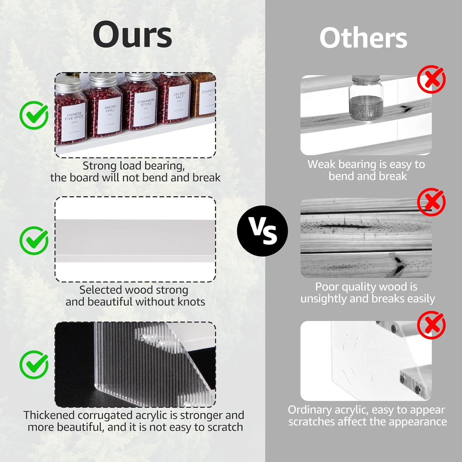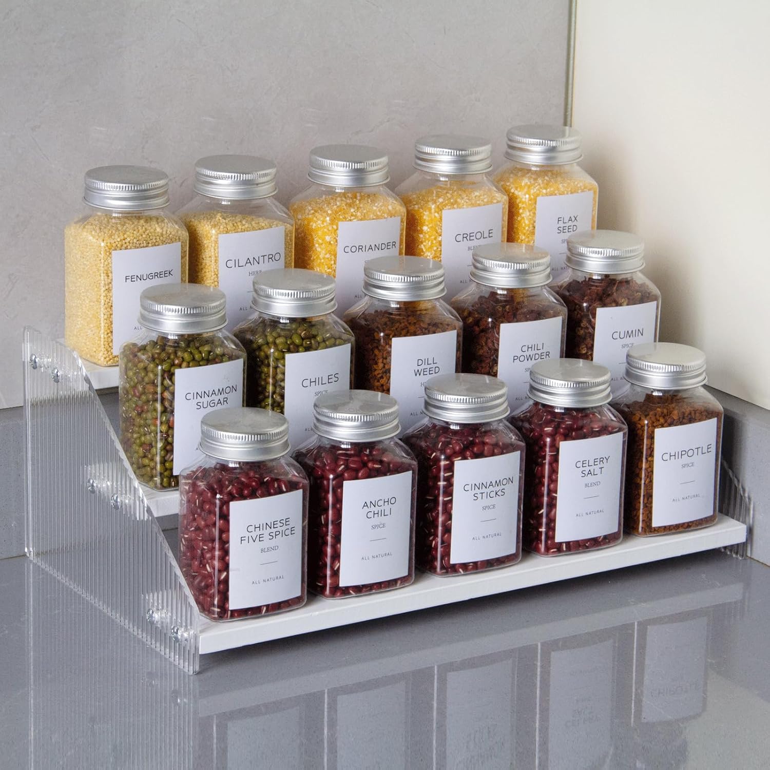 • Elegant & Sturdy: Risers display stands constructed from high-quality pine wood and corrugated acrylic, making it both aesthetically pleasing and fashionable, as well as durable and resistant to deformation, the spice shelf is a beautiful and robust addition to any space